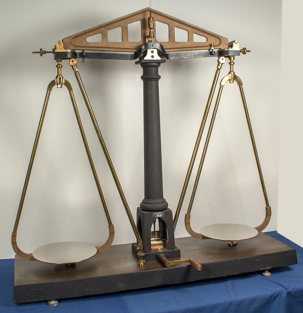 Massive! Over 4' tall, 41" wide, and 16" deep!!! Highest quality: agate on all contact points and needle indicator for weight above ivory base! Heavy, solid brass with a cast iron base. From the Henry Troemner Company of Philadelphia. Model 1751. Serial 10.57.11. Built in balance, mirror for accurate reading, find tune adjusting wheels, hand crank to lock scales, etc. Scale has a 1,000 ounce load capacity! Reported to us as from a Sacramento, California Assay Office. Sent back in 1957 for accuracy and cleaning. Fully functional! A showy piece for the mining, gold rush or ingot collector. (Just imagine your gold on that scale!) We will help you find affordable shipping. City: State: Date: c1890 Inventory# 40078