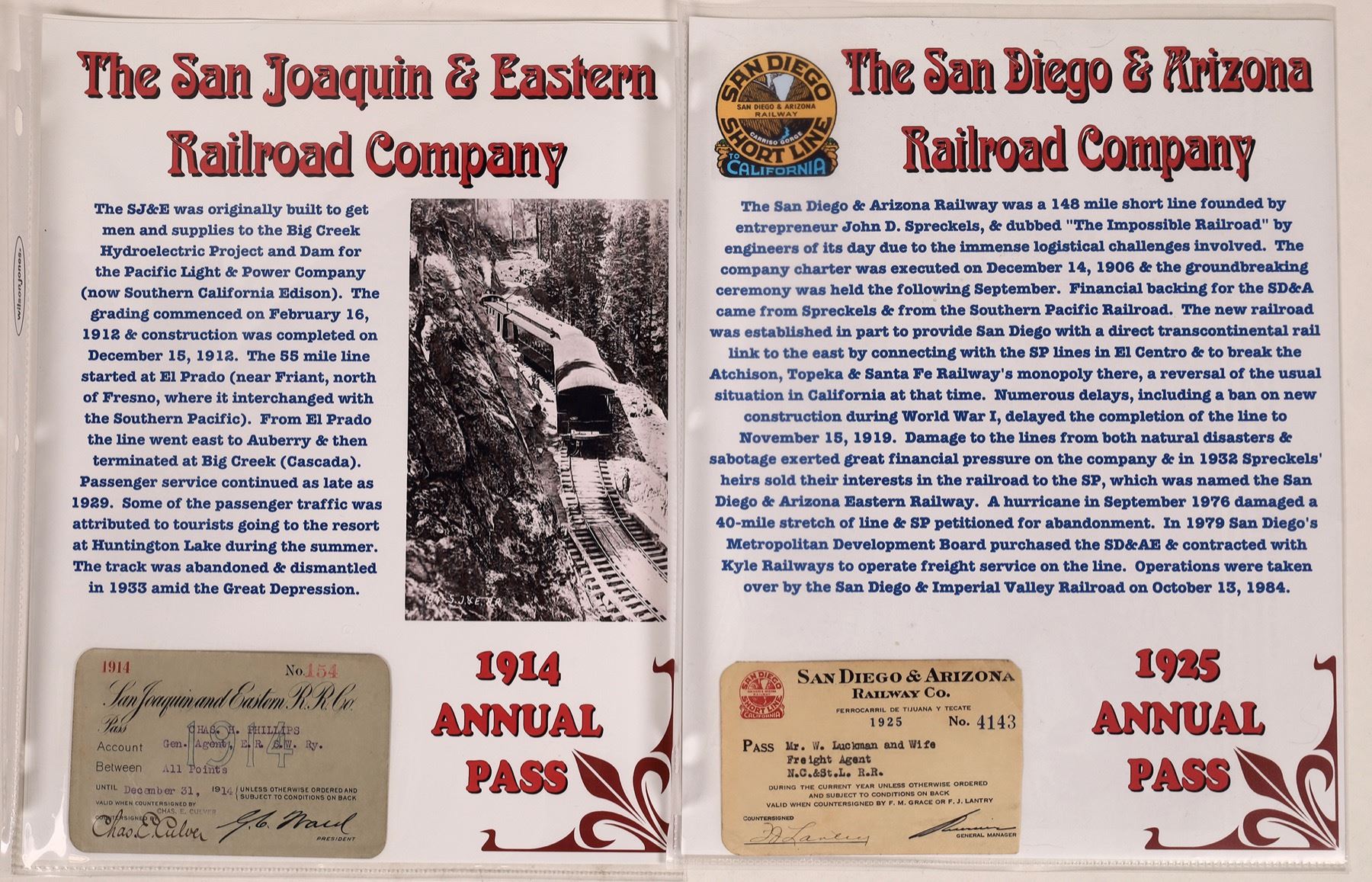 San Diego & Arizona RR, 1925; San Joaquin & Eastern RR 1914.