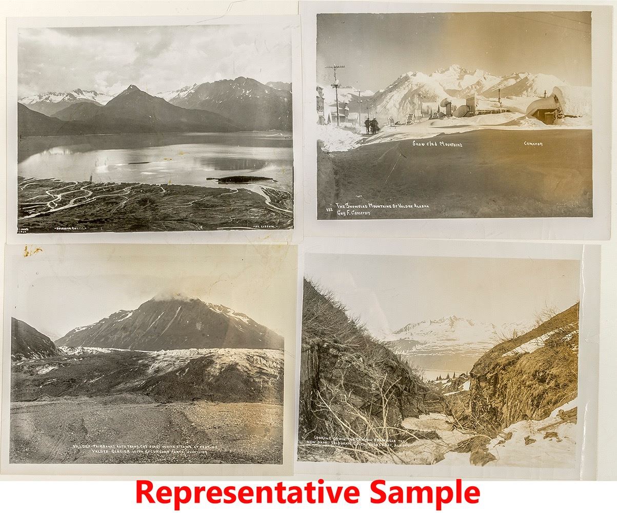 Lot of 12 Guy F. Cameron prints of scenes near Valdez Alaska. Street scene with dog team, panoramic views, Windy Falls. and a 51 ounce Valdez gold nugget. All photos 6 x 8 inches or bigger. Date: Location: Valdez, Alaska HWAC # 44234