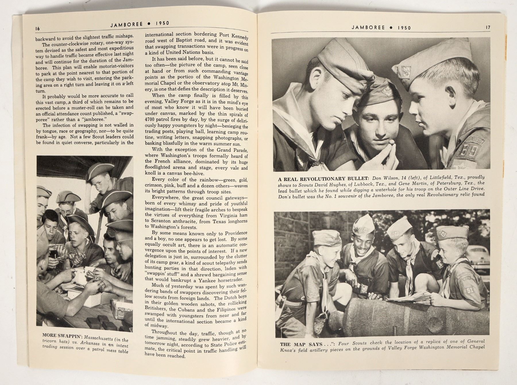 A 44 page booklet featuring the Boy Scouts of America Jamboree held at Valley Forge, Pennsylvania in June of 1950. There are several photos of the jamboree as covered by Philadelphia Inquirer reporter John M. McCullough. Softcover and in decent condition. Please see photos for more details.