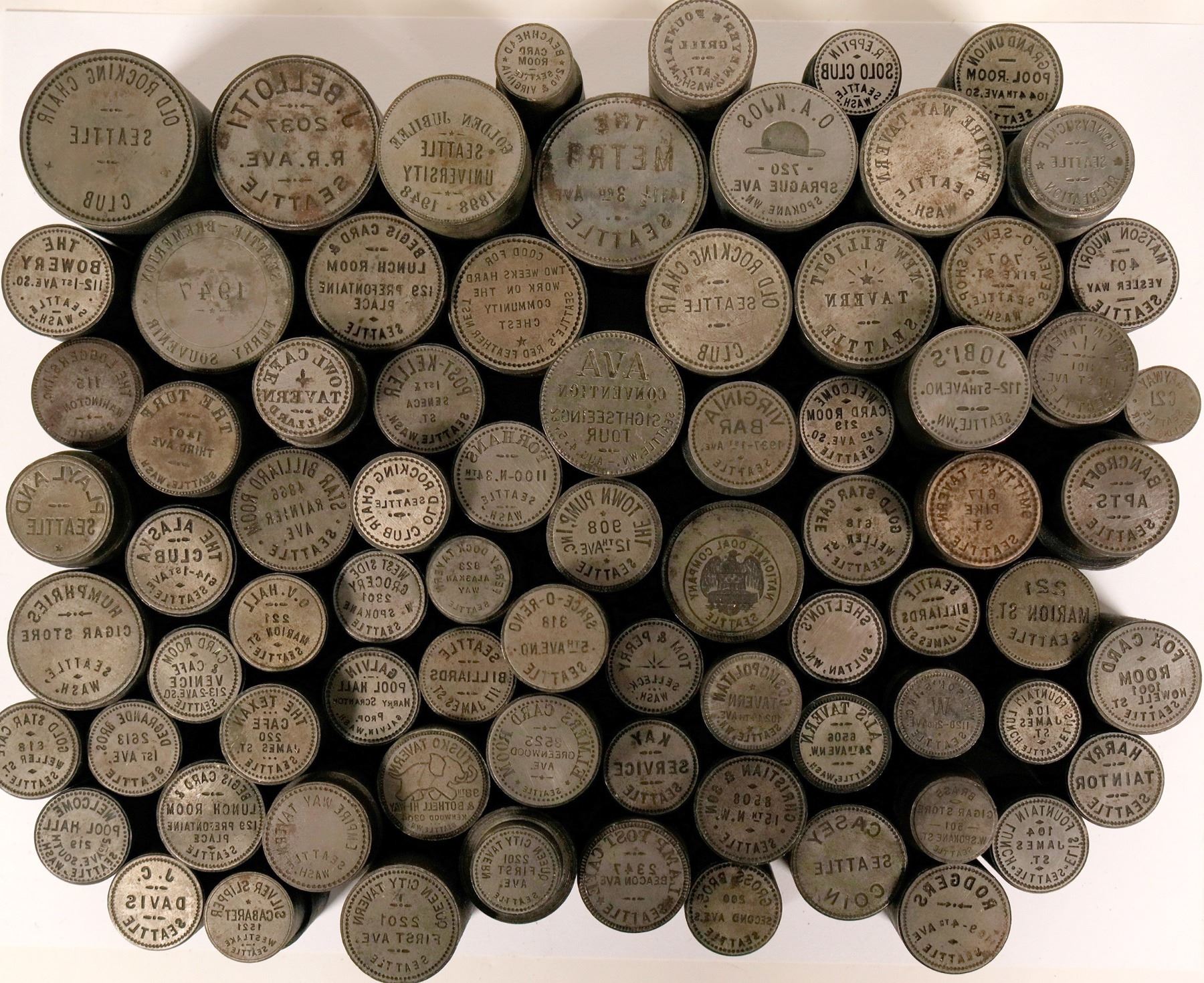 Grab bag of different dies, 50+, various sizes from Seattle, Washington. From the Northwest Territorial Mint Historical Die Collection.