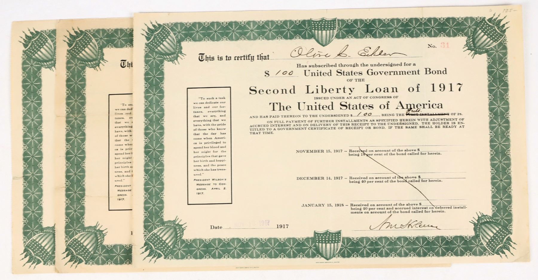 Three certificates issued in the Second Liberty Loan of 1917 fund raising drive.