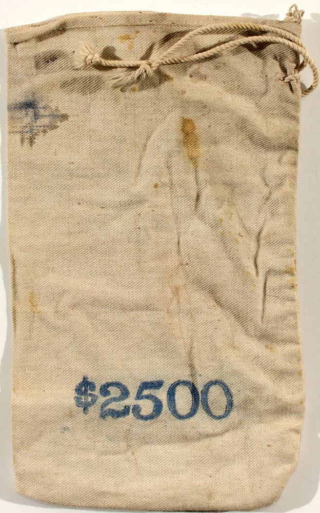 Stamped in red ink: "RENO NATIONAL BANK/ Reno, Nevada." Blue ink on both sides: $2500. Some soiling and signs of use. 8.5" x 5"