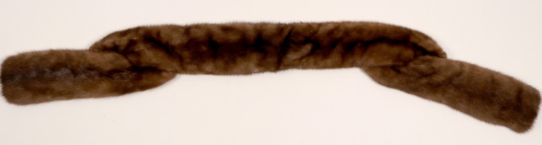 Approx 43" length, 5.5" wide. 3 pieces are sewn together and has a soft lining of velvet. Hook & Eye closures.