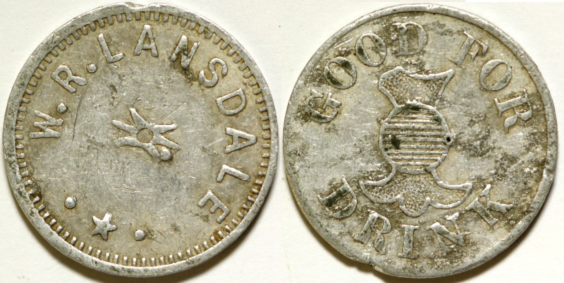 Obv.: W. R. Lansdale ; Rev.: Good For / Drink. Wm, rd, 21 mm. Daniel Manassillian Collection.