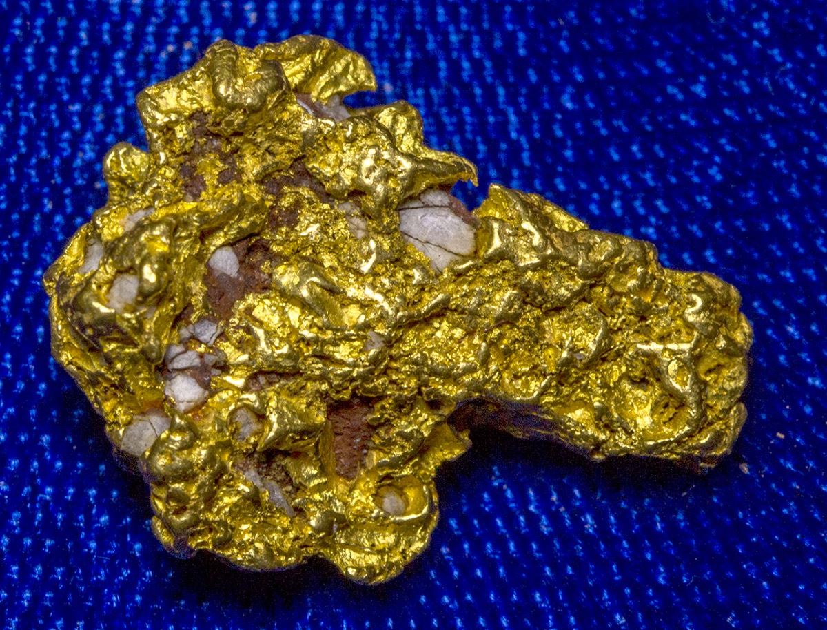 Sierra City. 0.23 troy ounces. 0.9x2.0x1.6cm. Quartz can be seen throughout and under the gold. Nice! The North Yuba River has produced a number of very nice nuggets since the Gold Rush. It is a popular area today for nugget hunters. City: Sierra City State: California, Date: Inventory# 40220