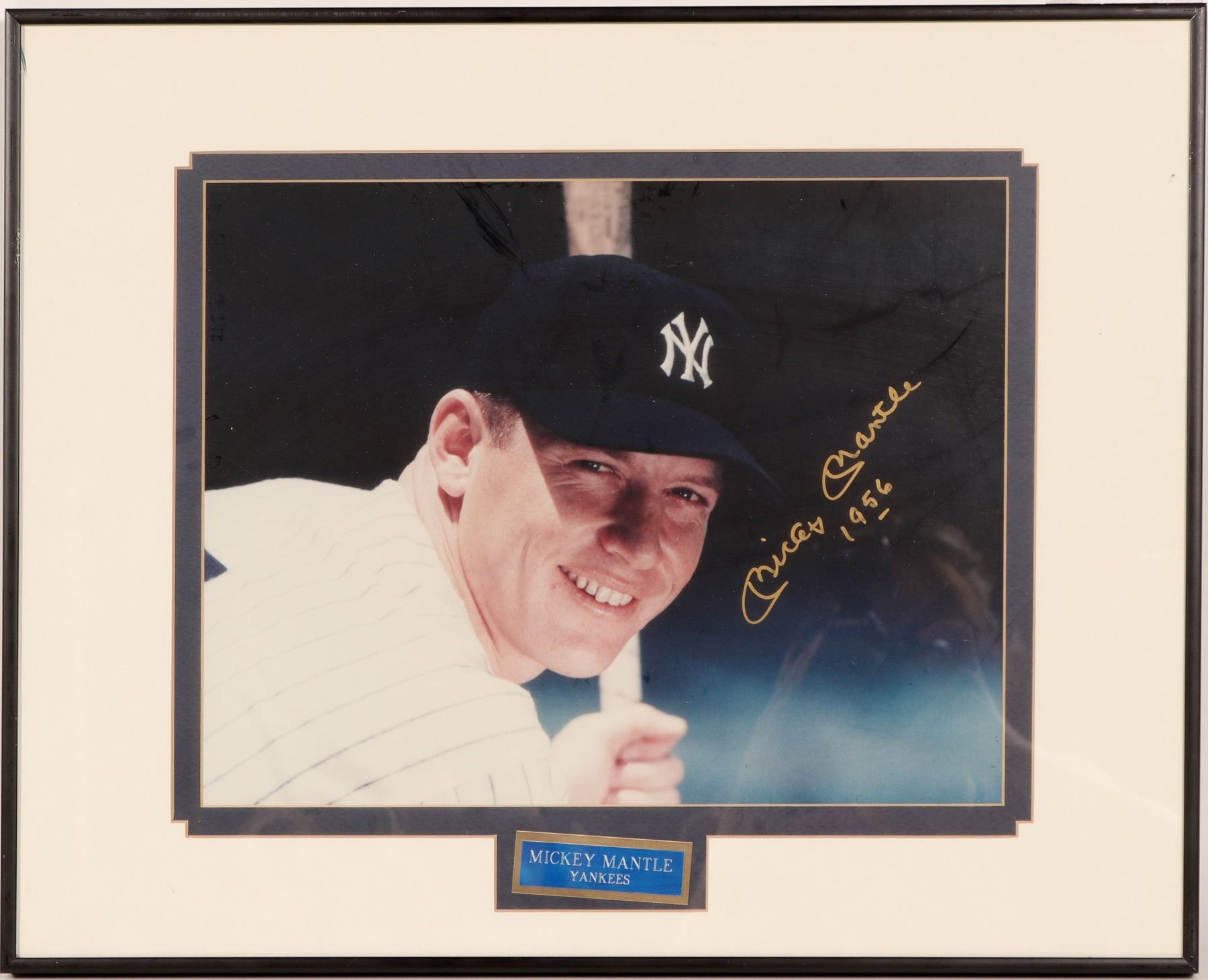 This is a framed 11 x 14 photo and autograph of Mickey Mantle. Autograph in gold ink on right center of the photo. Comes in beautiful black case.