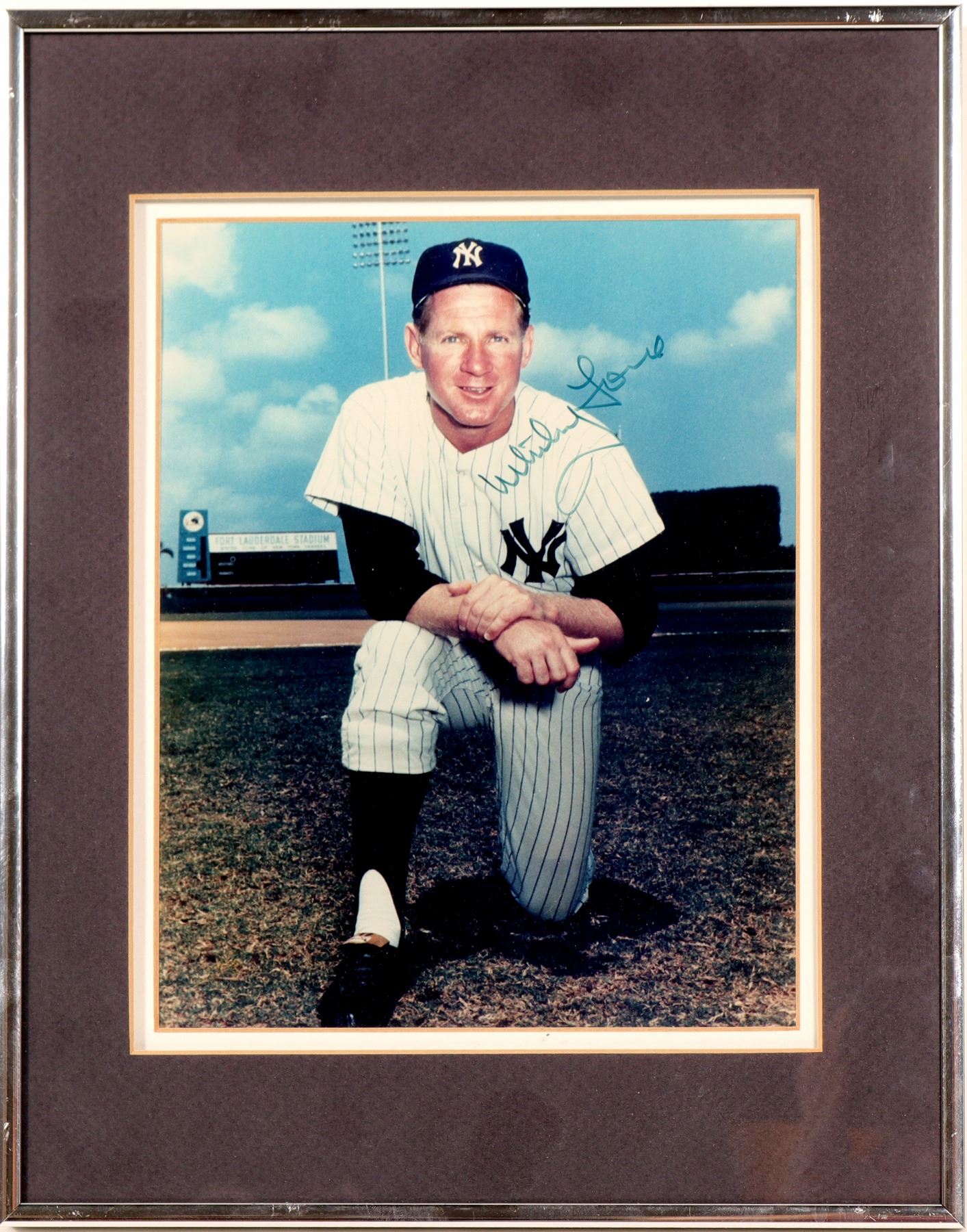 This is a framed 8 x 10 photo and autograph of Whitey Ford. Autograph in blue ink on the top right center of photo. Comes in beautiful grey case.