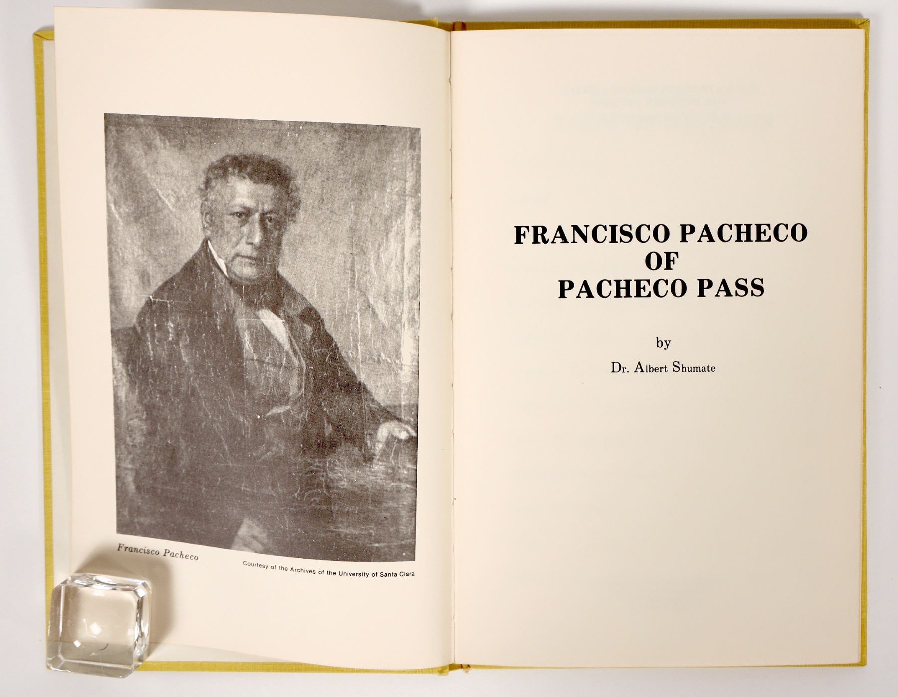 A copy of 'Francisco Pacheco of Pacheco Pass' by Dr. Albert Shumate, signed by the author. Hardback, 47 pages. Good condition.
