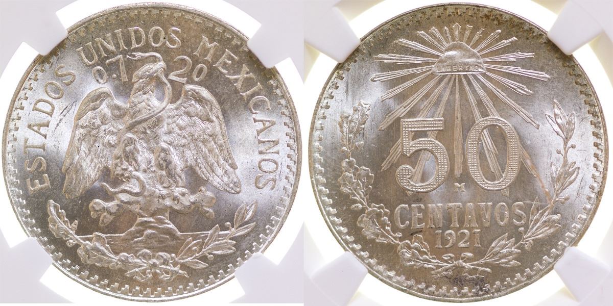 KM # 447, .1929 oz., .720 fine, 27mm, MS 66. State: Mexico City: Date: 1921 FHWAC#: 40654