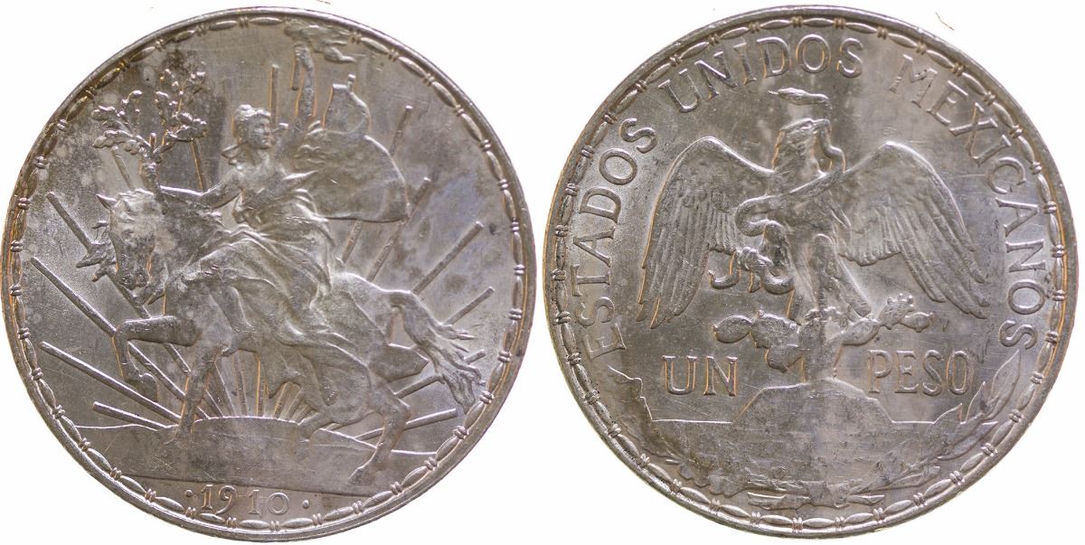 1910 Un Peso, KM # 453, .7859 oz., .903 fine, 39mm. Uncertified due to PVC damage, uncirculated details, catalogs $250 in Unc. Candidate for conservation. State: Mexico City: Date: 1910 FHWAC#: 40658