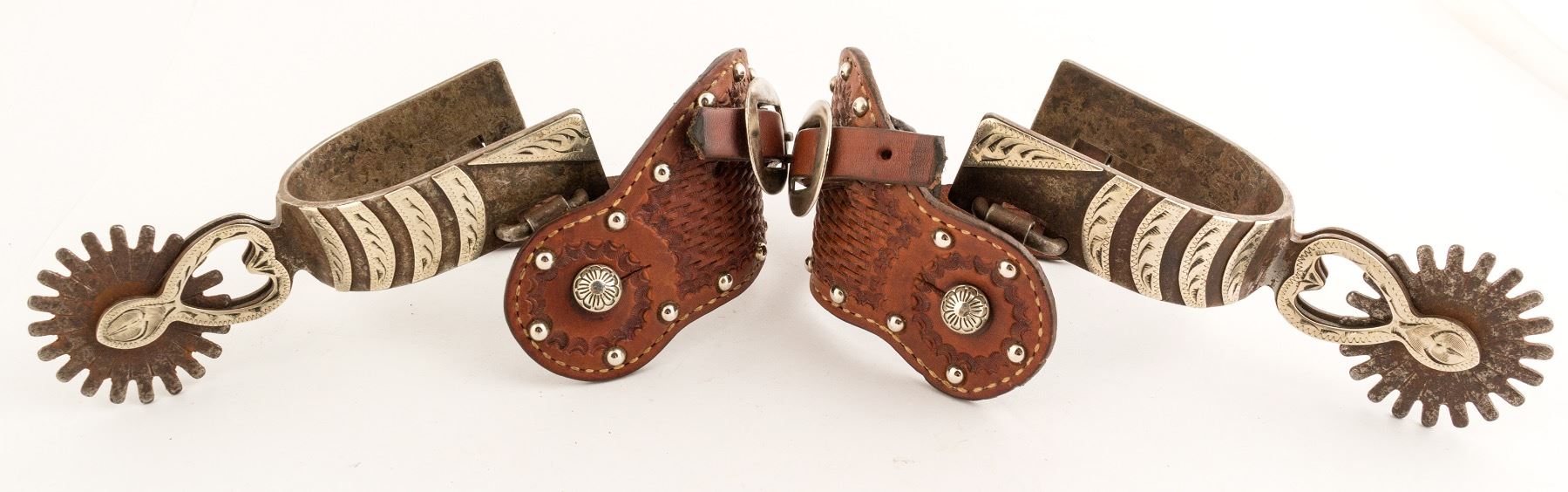 Unmarked. Single Mounted Silver Spurs with spotted straps. State: City: Date: ID# 49835