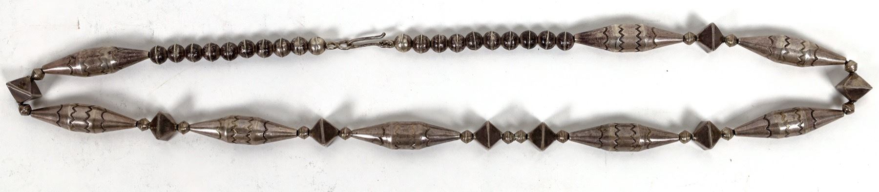 Silver necklace with no markings. Weighs 60 grams, 24 inches long.