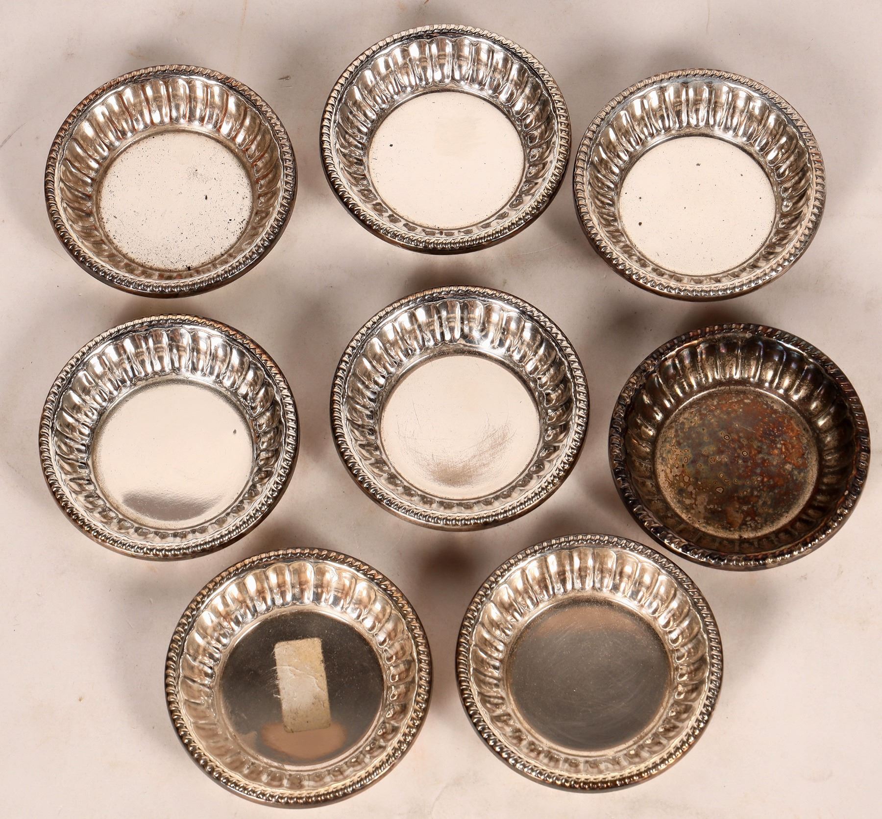 19 c. 1910-30 smaller silver plate pieces, 2.75x1.5" to about 4x7x4". 4 rectangles with legs, 2 goblets, 8 round, 2 tea pots etc. See photo.