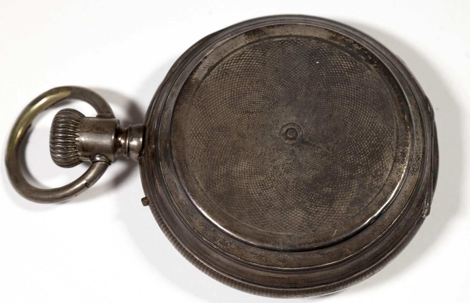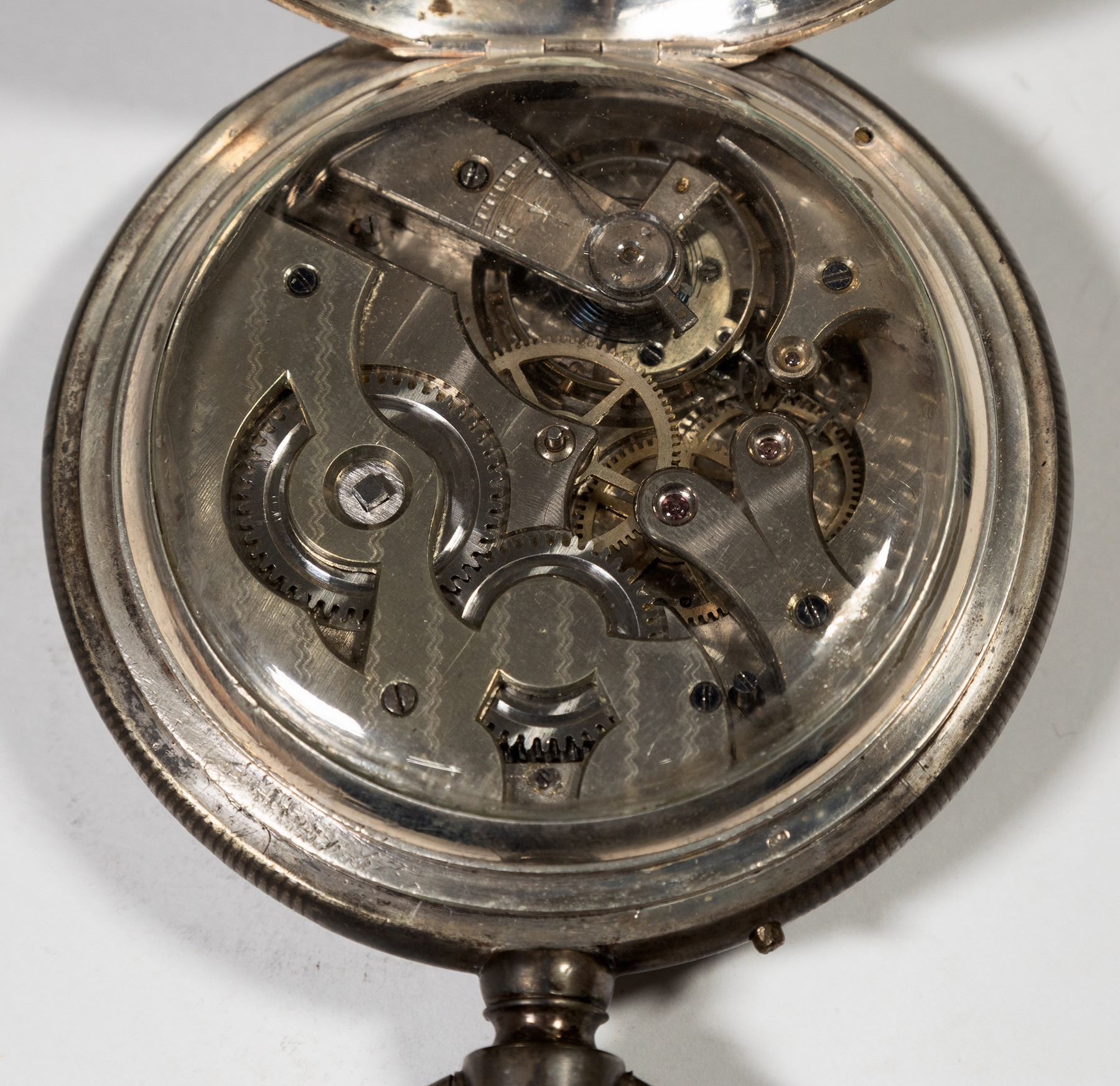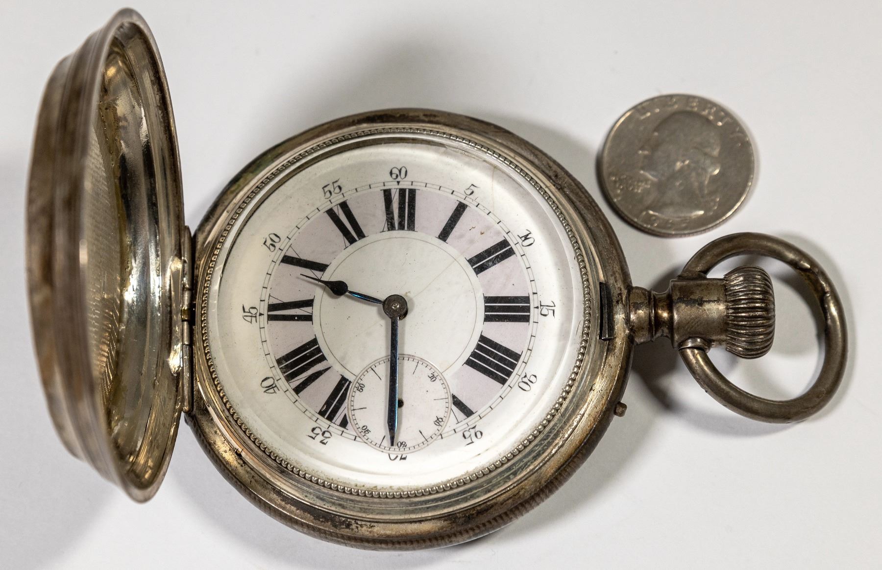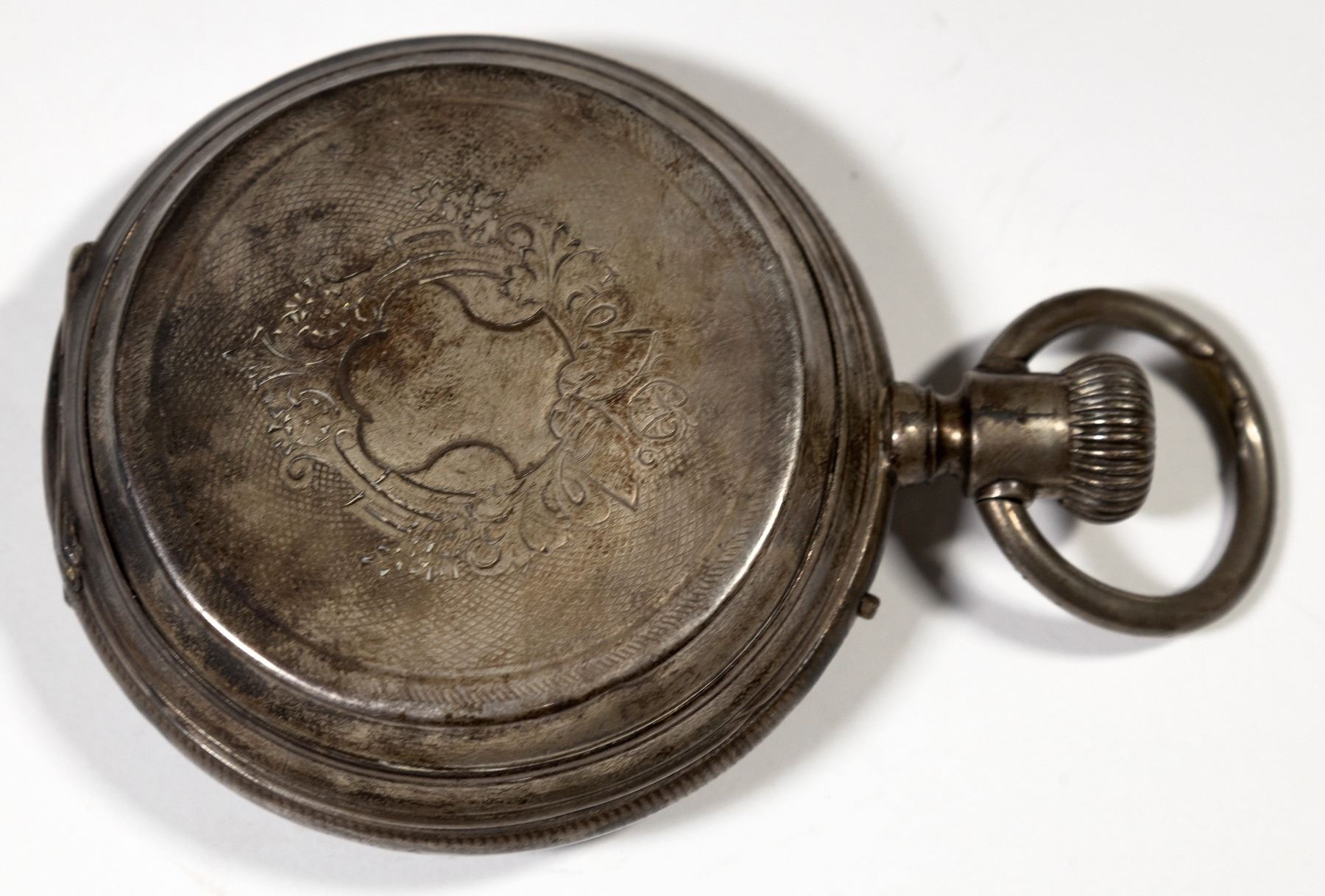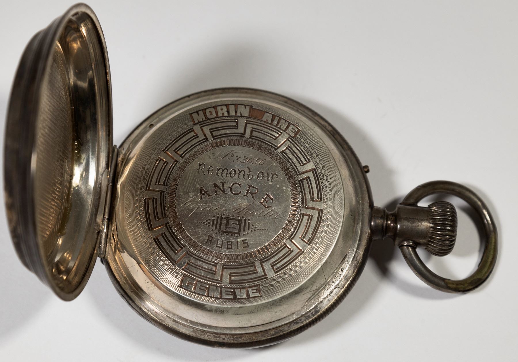 Antique Remontoir Ancre Swiss pocket watch (Goliath) Ligne Droite, 15 Rubis. Large size--2.75" case. Morin Aine, Geneve, IR 33056. Very large heavy roman numerals. Very tarnished.