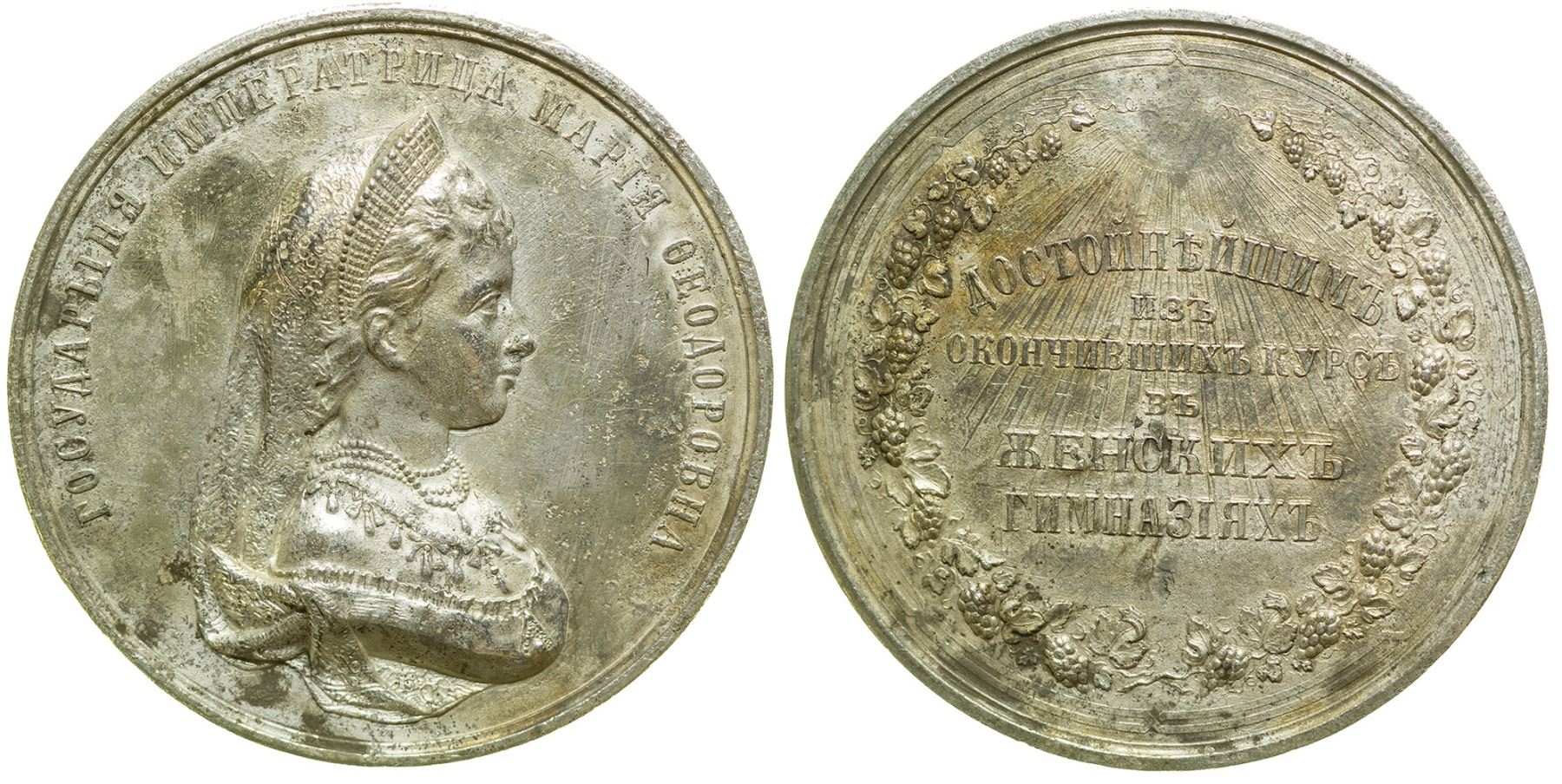 Believed to be an award for a women's gymnasium graduation from 1850. 51 mm, 59.5 grams. HWAC# 52402 Date: Location: