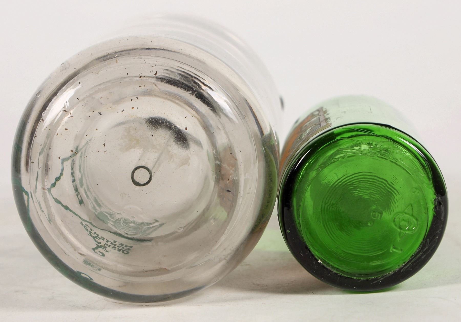 Silver State, Reno bottles. Green Lime Rickey crowntop soda with mostly intact labels. Clear pyro seltzer.