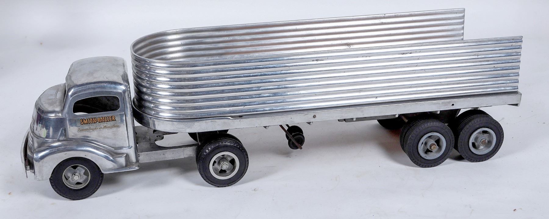 Silver Streak, Stainless Steel, Smith-Miller, Express Tractor/Trailer Grain Hauler 1948, 24" long. Near pristine, almost no play, possibly none.
