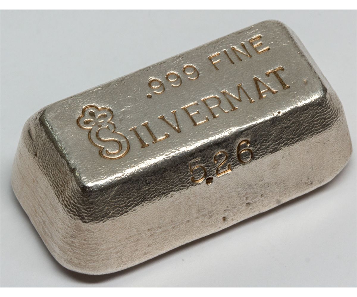 5.26 troy oz. .999 fine. This is the only Silvermat ingot we have that has a "Silvermat" mark on the front of the ingot.City: County: State: Date: