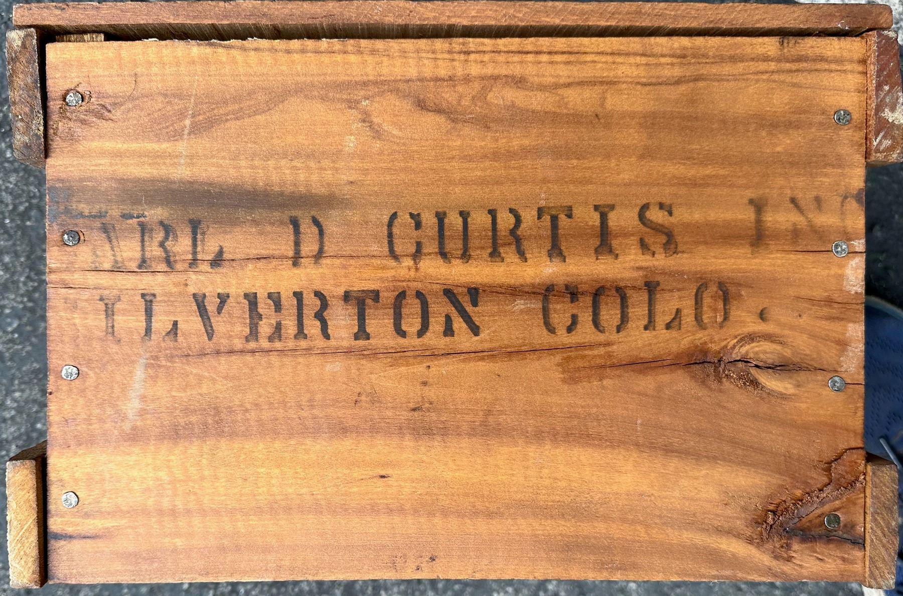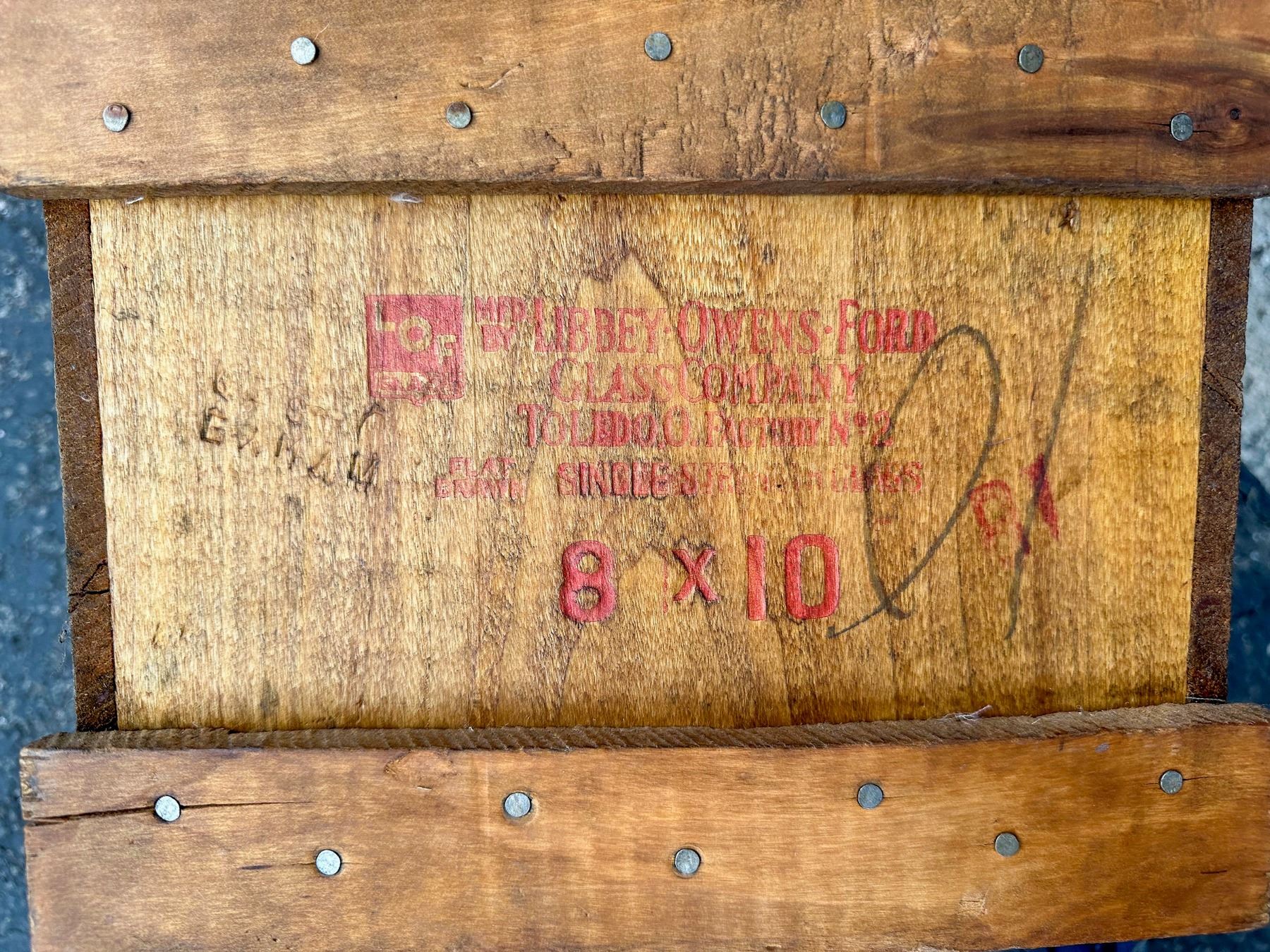 Original vintage wood box fromthe Libby-Owens-Ford Glass Co in Toledo to earl D. Curtis, Silverton. This box may have held embossed drug bottles or otehr embossed bottles for Curtis. very rare as such. about 10 x 12 x 10" Bracken Collection. Colorado Silverton
