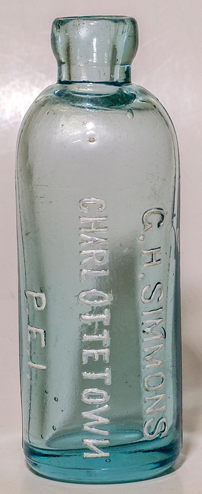 Prince Edward Island. Simmons Hutch soda bottle from Charlottetown with a backwards N. Aqua Hutch soda bottle, mint. Date: Location: Prince Edward Island, zCanada HWAC# 47617