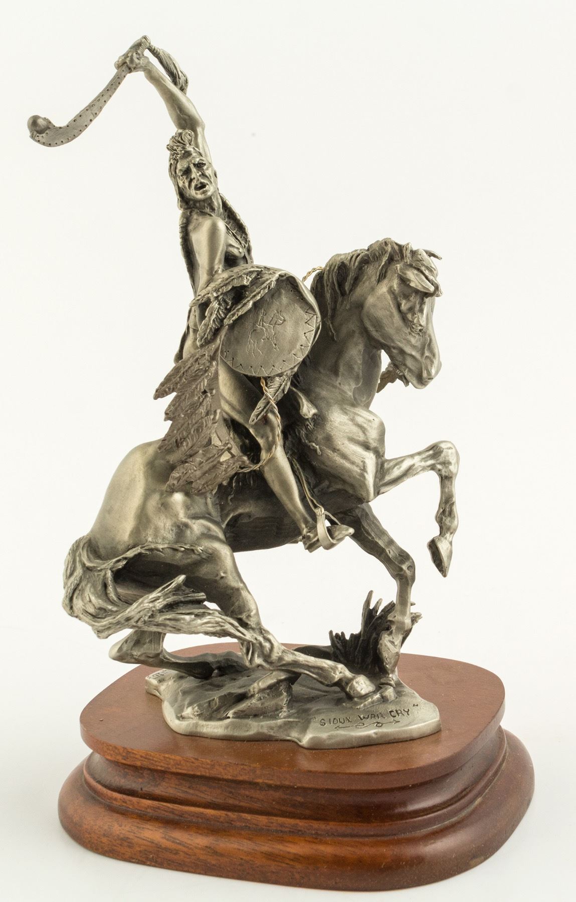 "Sioux War Cry" by Michael Boyett. Pewter sculpture, # 1313 / 2500. 6.5" x 4" x 3". State: Texas City: HWAC#: 48155 Date: