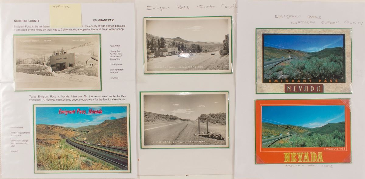 Emigrant Pass Museum RPC, two newer black and white RPC's, and three color post cards. Nice presentation. (Rhodes Collection) State: Nevada City: Emigrant Pass Date: FHWAC#: 20651
