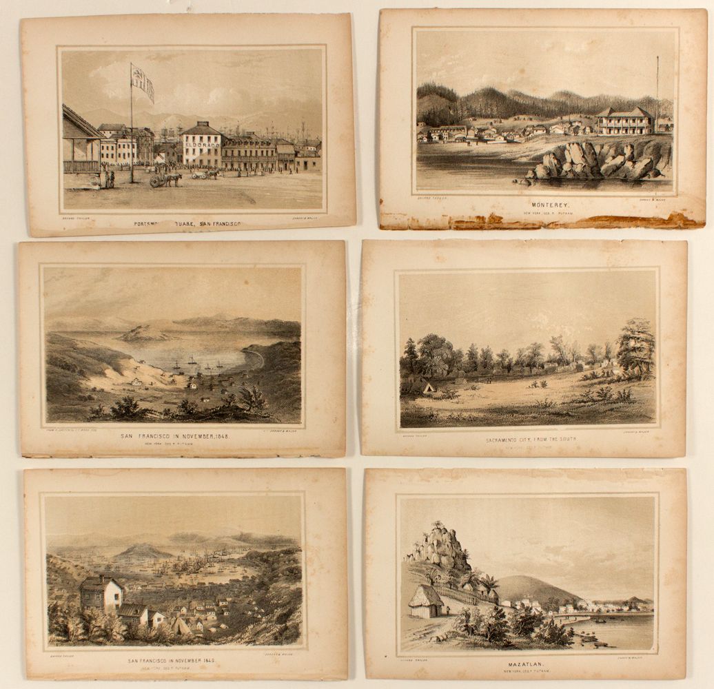 Six engravings--3 of San Francisco and 1 each of Sacramento, Monterey and Mazatlan. All by Sarony & Major from an illustration by Bayard Taylor. From the Burger collection.