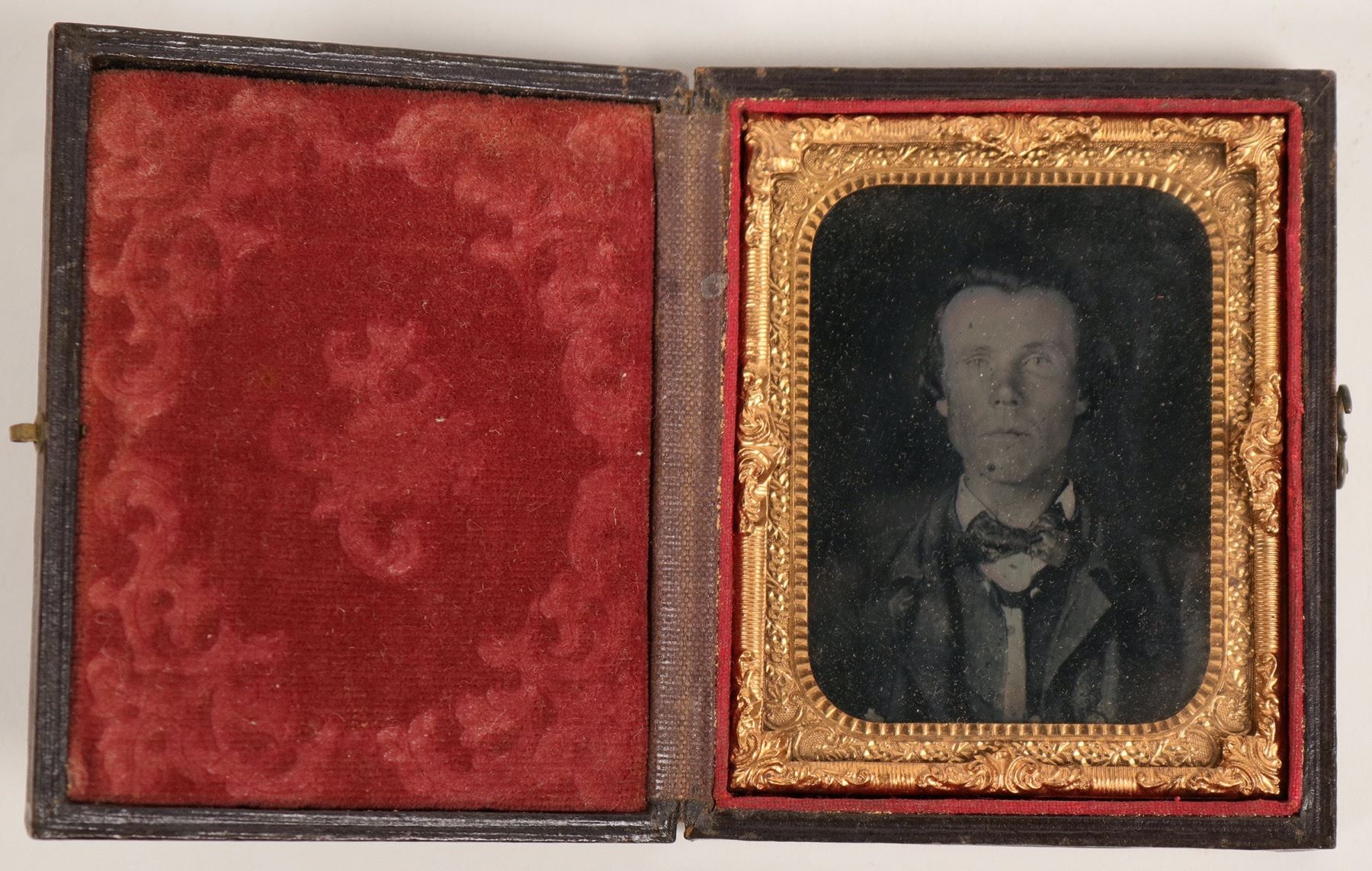 This is a 2"x 3" ambrotype of a young man dressed in his formal duds. This type of photograph was taken between the years 1863-1865. Because of its fragility, it is usually kept in a hard case, as is this one.
