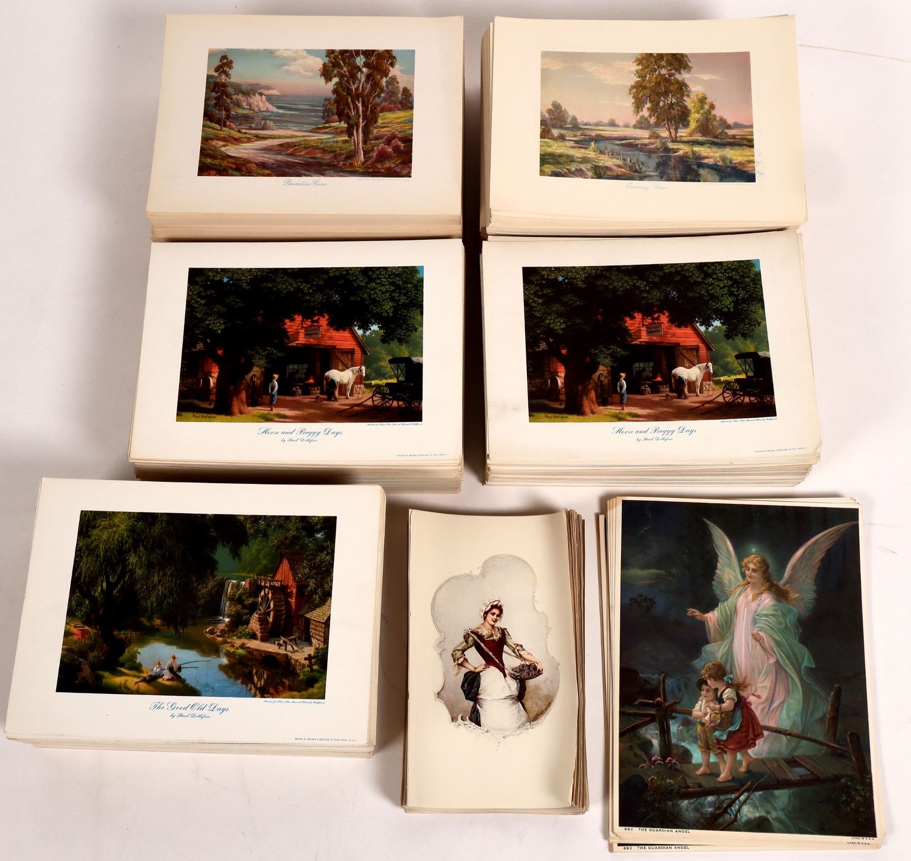 About 2000 smaller art prints in sorted bulk, approx. 6x8". Will be a great inventory item for a museum gift shop or for a dealer. Paradise Cove, Evening Glow, Horse and Buggy Days, The Good Old Days etc. 19 lbs.