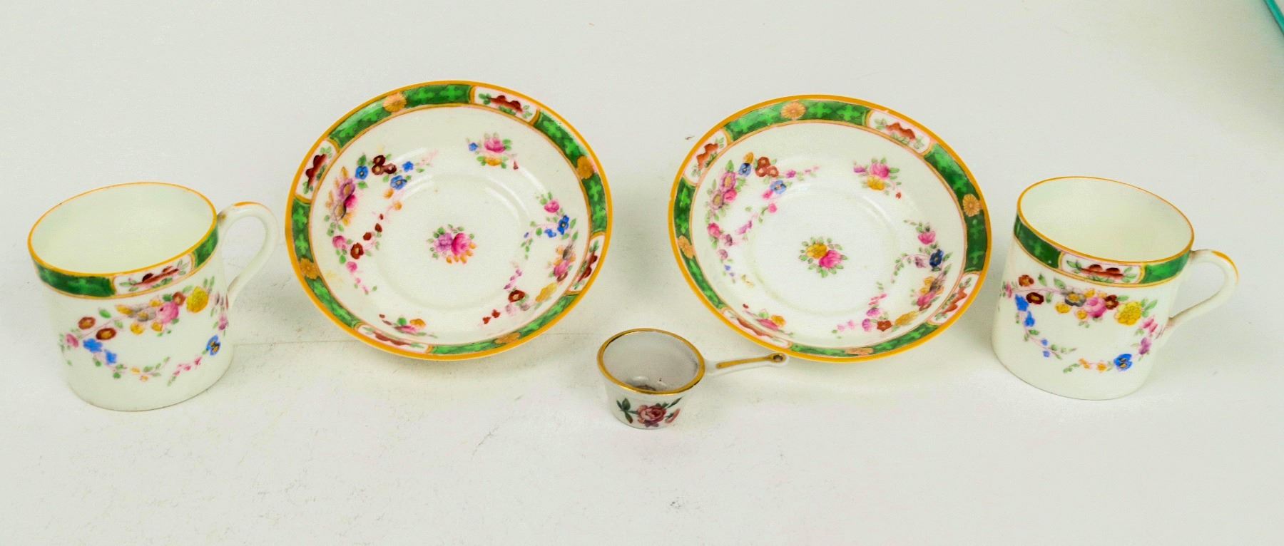 Lot of 5. Crown England Sutherland vintage tea set. Two cups, two saucers and on small dipper. Excellent cond.