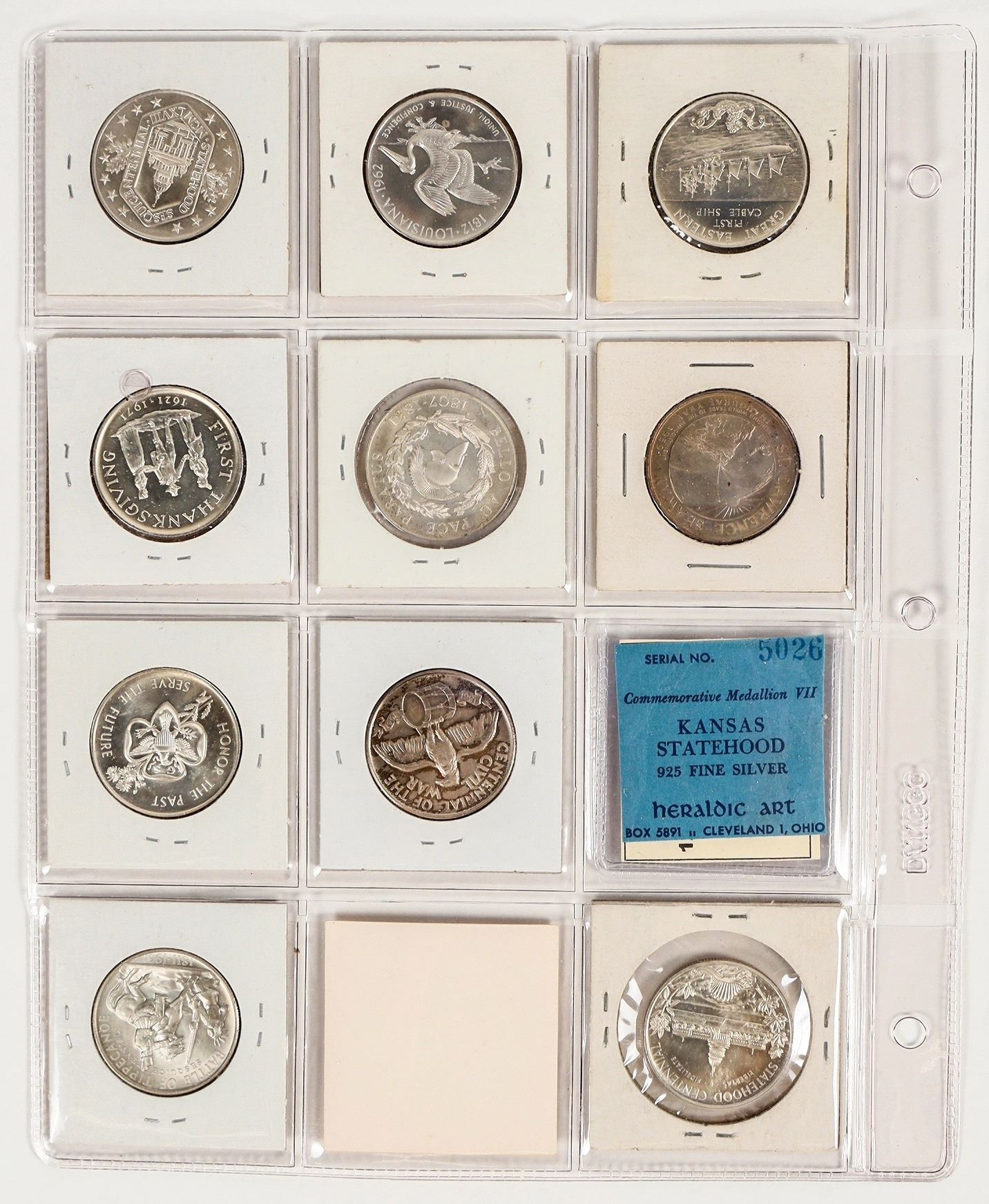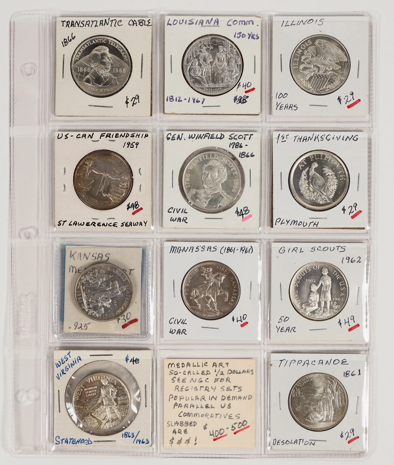 Eleven so-called half dollars struck by Medallic Art Company commemorating various people, places, and events. See photos for design details.