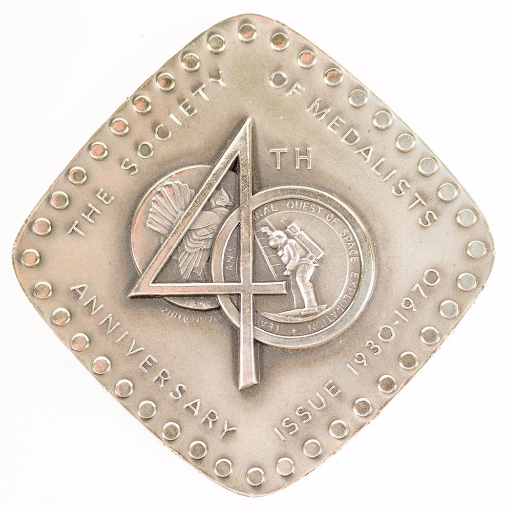 Sculptor: Julian Hoke Harris. Obv.: 40th Anniversary; Rev.: Athenian owl. Special Issue #2, struck in silver, 77 x 77 mm, includes original box and paper of issue. State: City: Date: 1970 FHWAC#: 43132