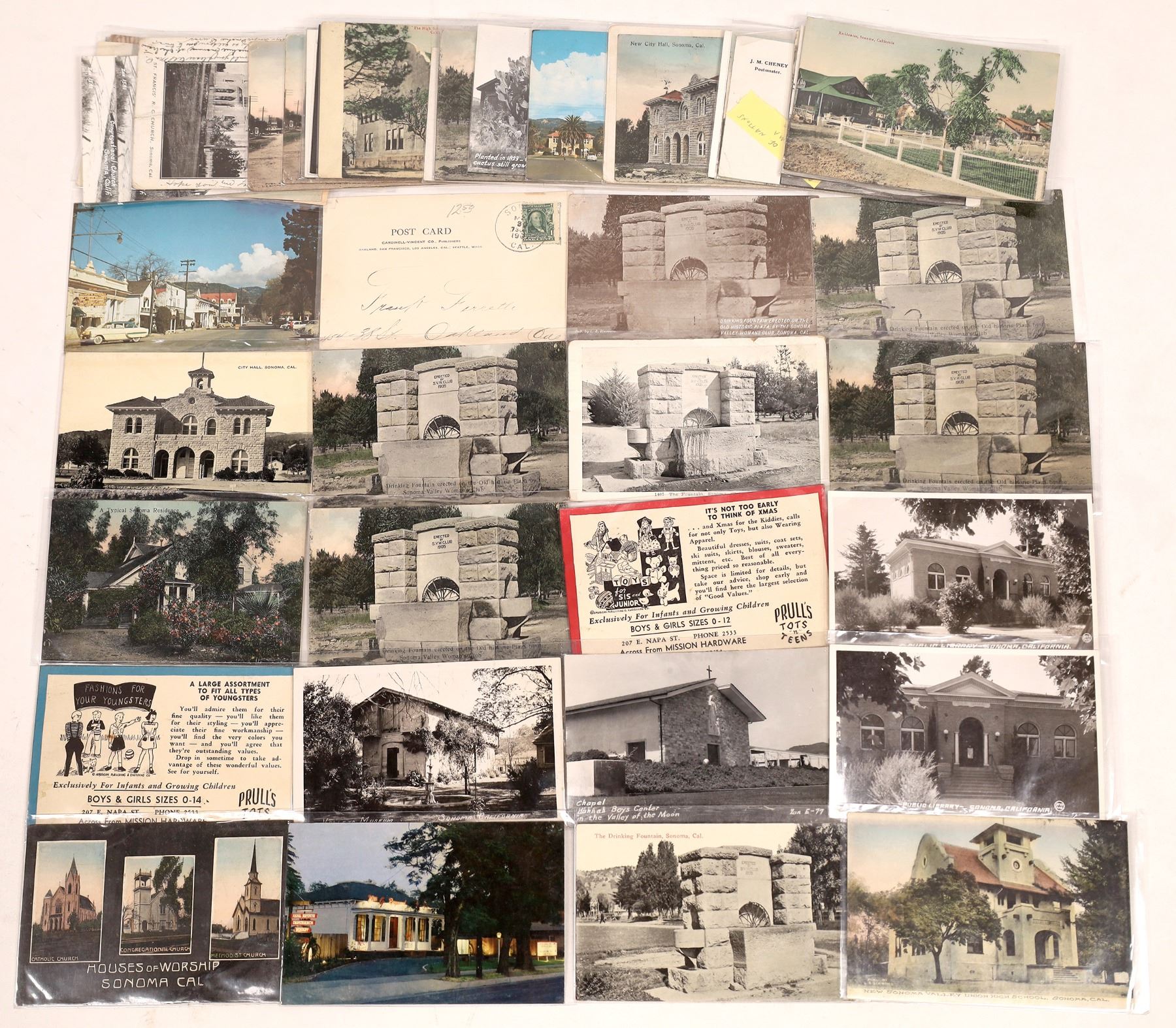 Lot of over 40 vintage postcards from Sonoma California featuring buildings, street scenes, churches and more. State:California City:Sonoma Date: Provenance: Ken Prag Collection