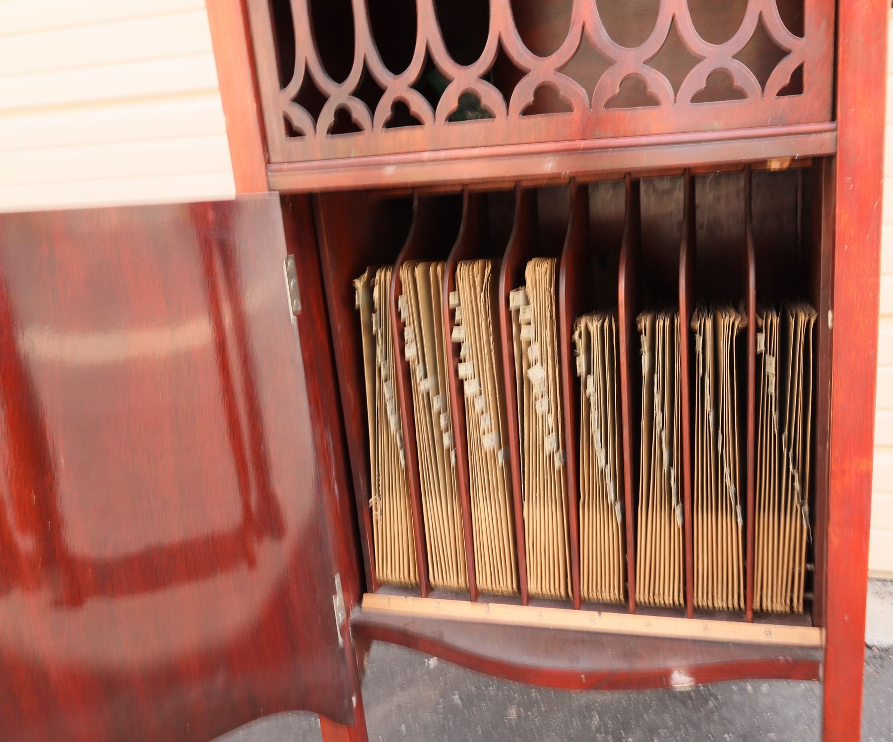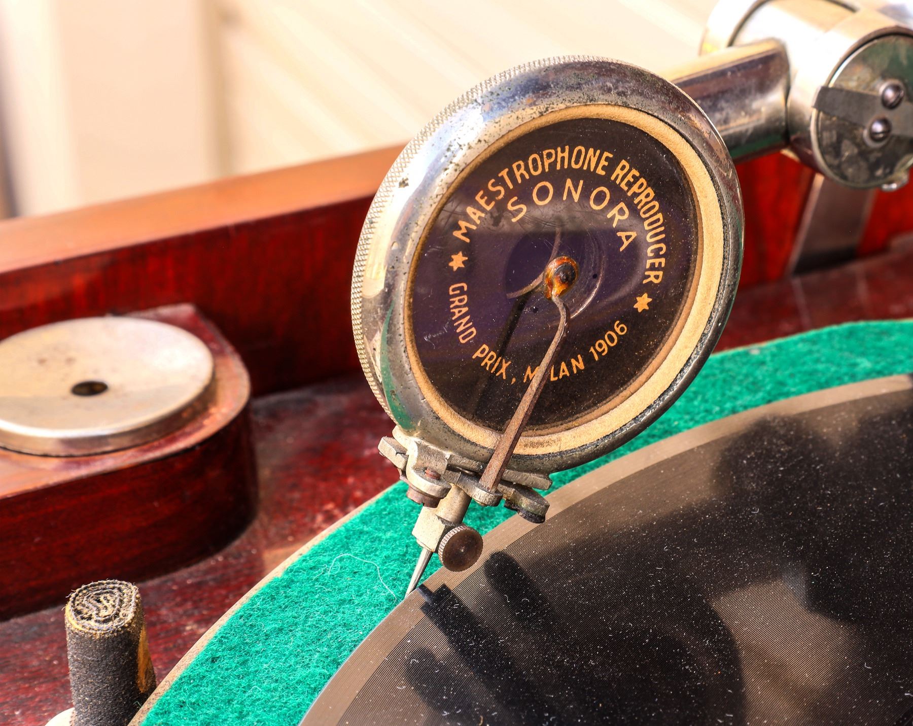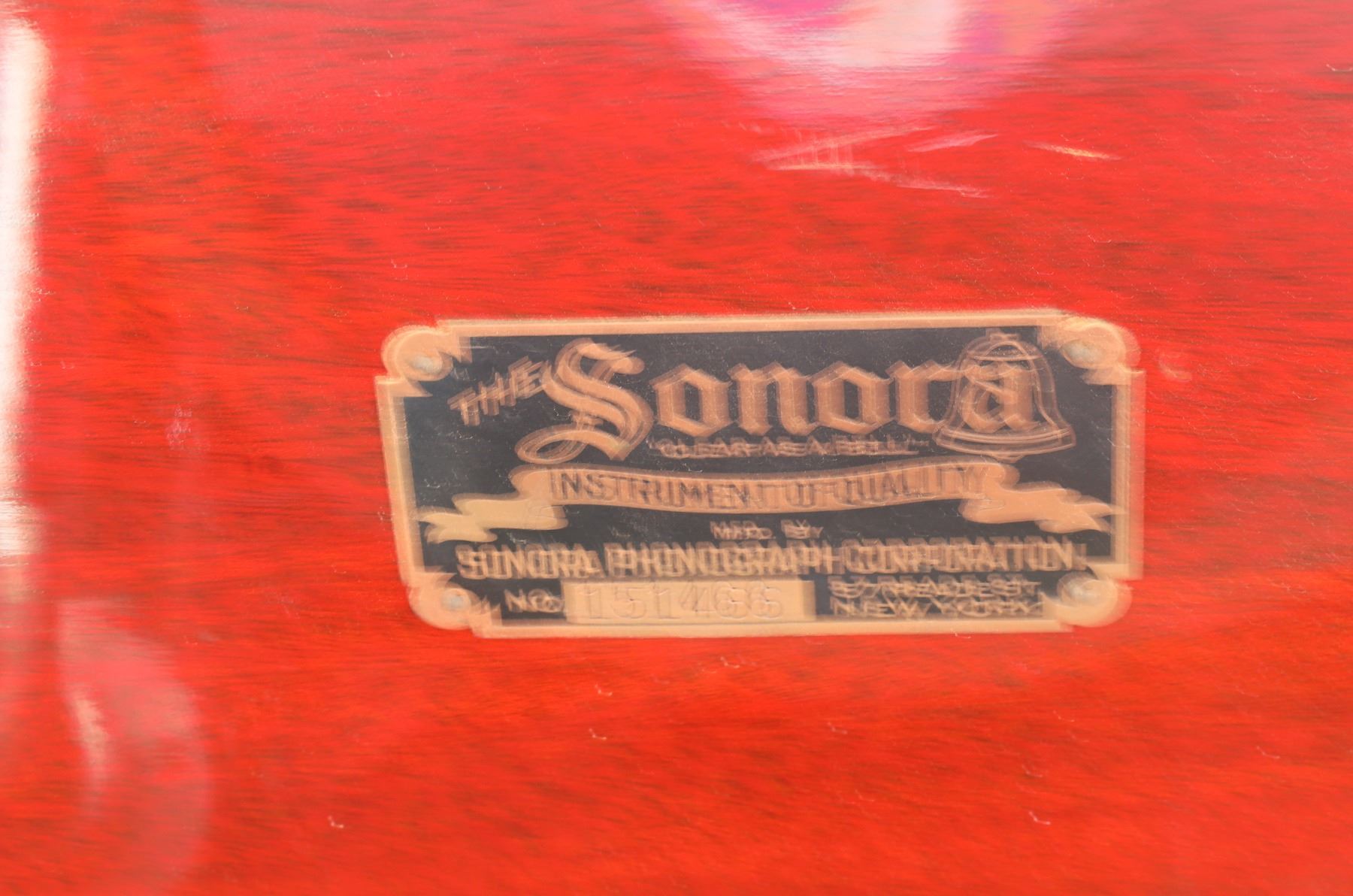 A Sonora Phonograph serial number 151466. This is a beautiful piece of furniture and slightly fancier than the top of the line Imperial model. The cabinet measures 18" deep, 20" wide and 43" tall. This is out of New York and has some blemishes, but all in all, in nice condition for it being a century old. New York New York