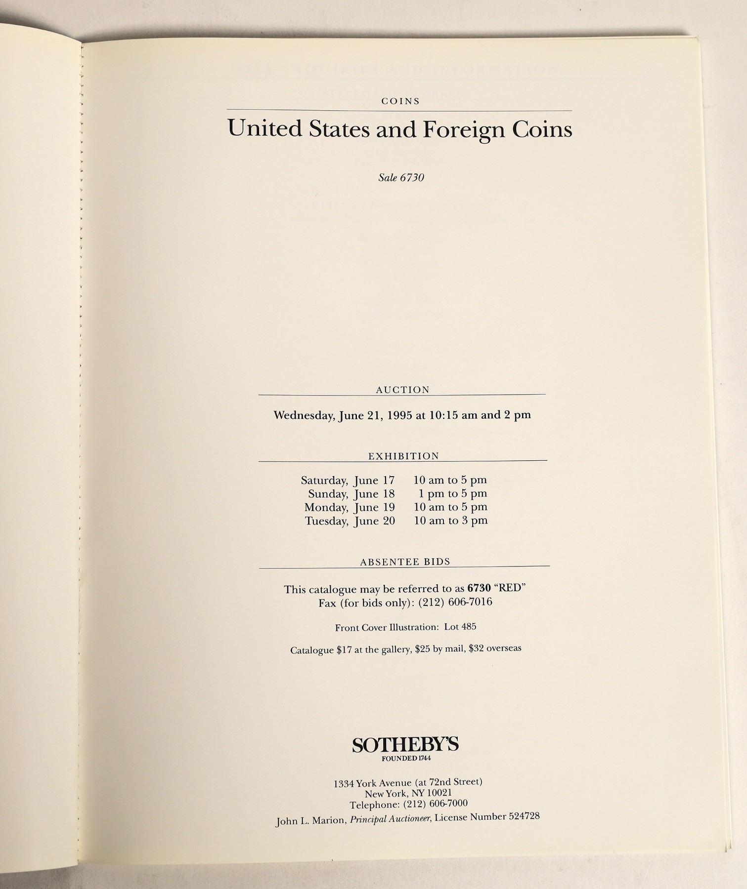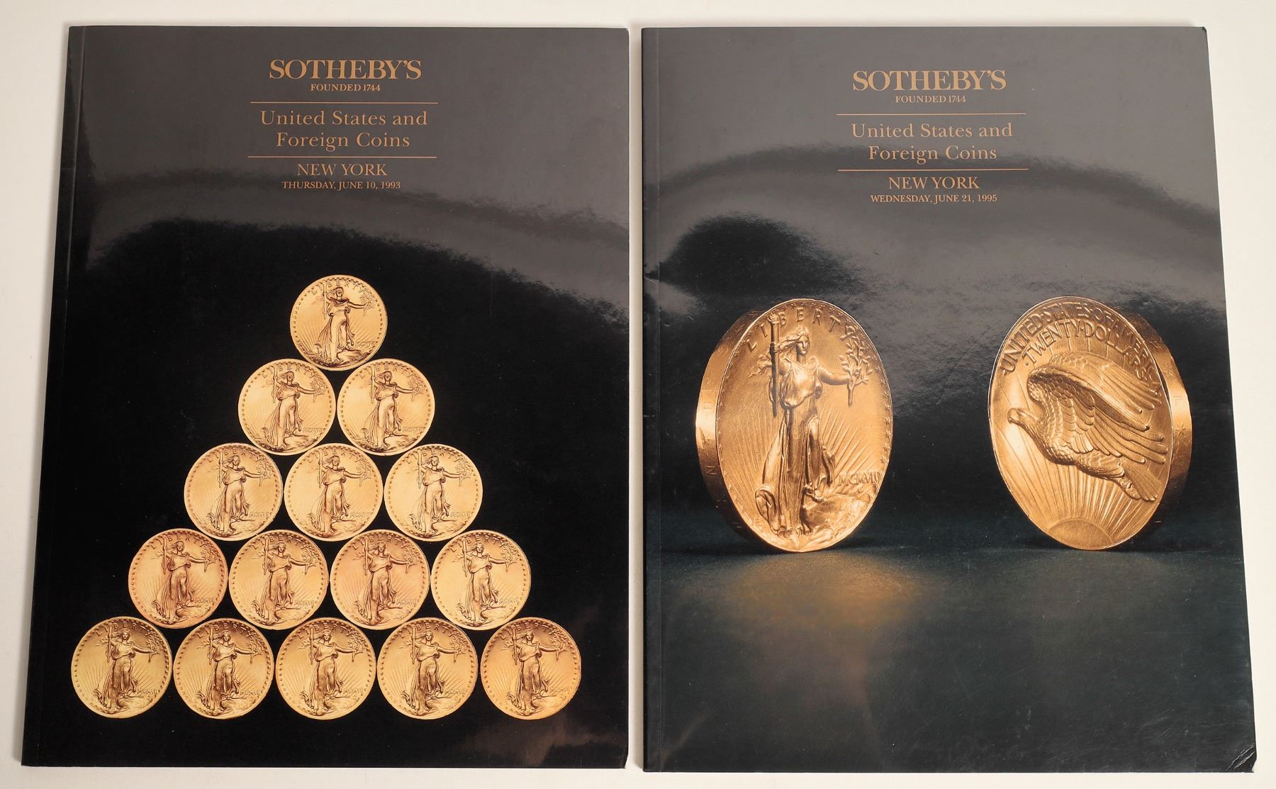 Two catalogues from the June, 1995 Sotheby's New York auctions of the famous collection of High Relief St. Gaudens $20 gold pieces. Prices realized for the June 10 auction included.