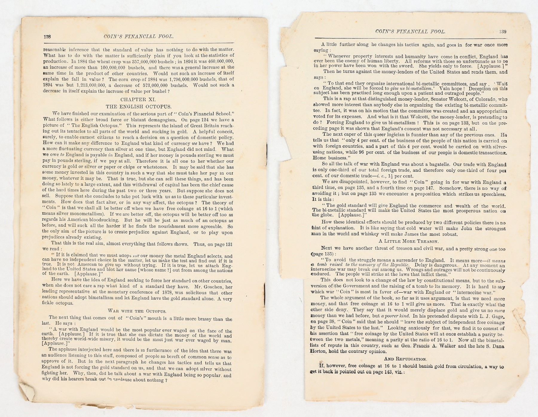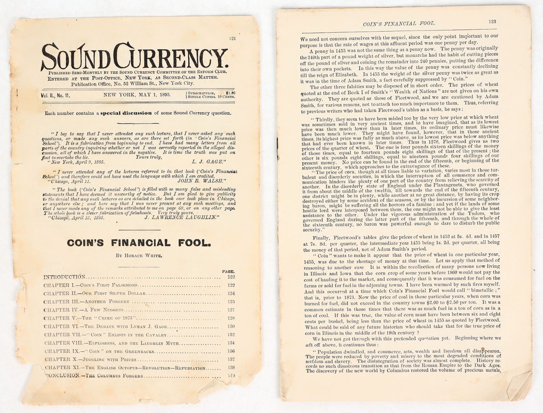 Published semi-monthly by the Sound Currency Committee of the Reform Club of New York. About 20 pages, 6 x 9 inches, no cover, first page detached. Discussing silver issues.