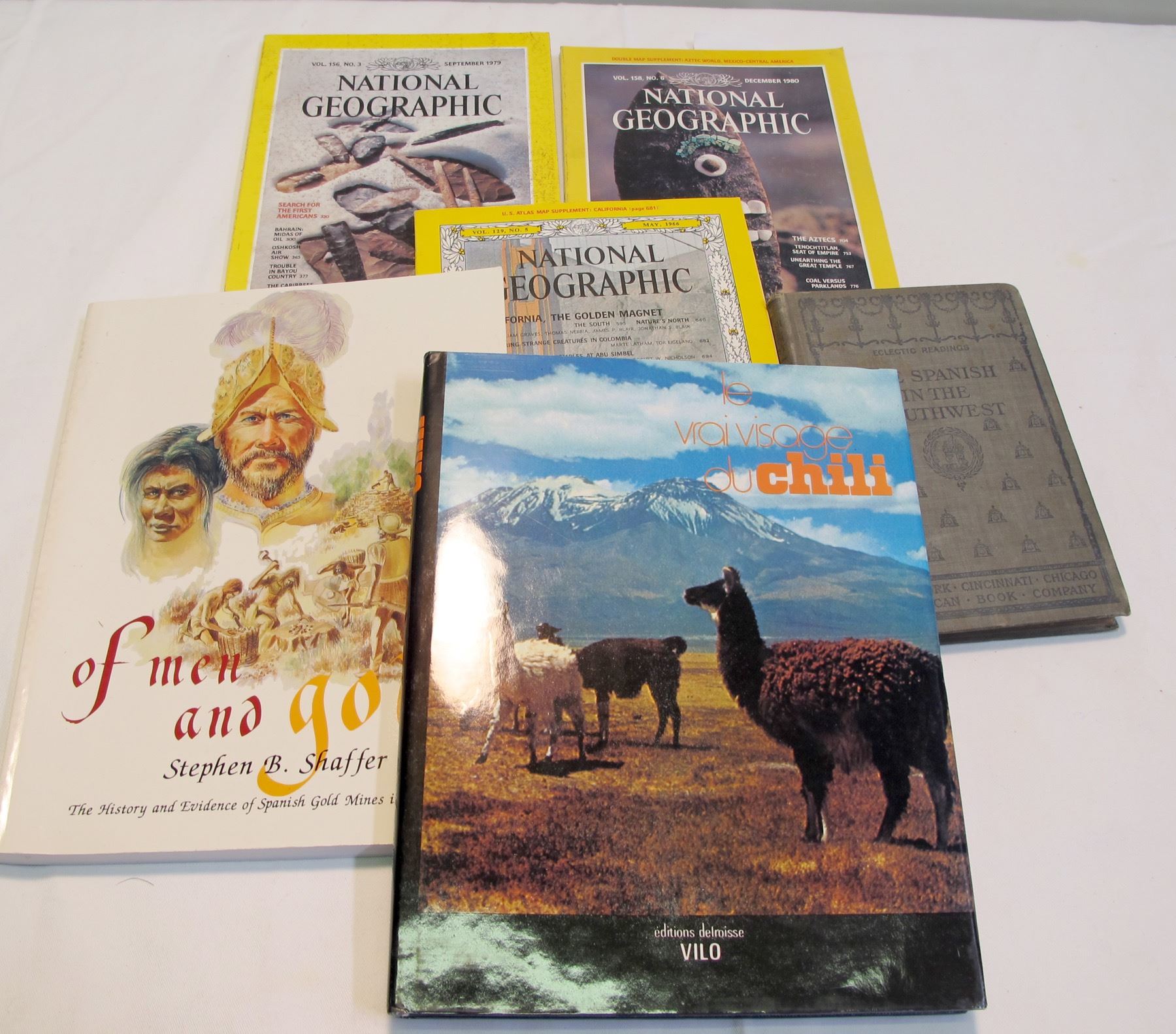 Lot of 3 magazines, National Geographic, hardback book of The Spanish in the Southwest, Of Men & Gold by Stephen B. Shaffer (Spanish Gold Mines in the West.) State: foreign City: Date: c1966- 1980 HWAC# 84466