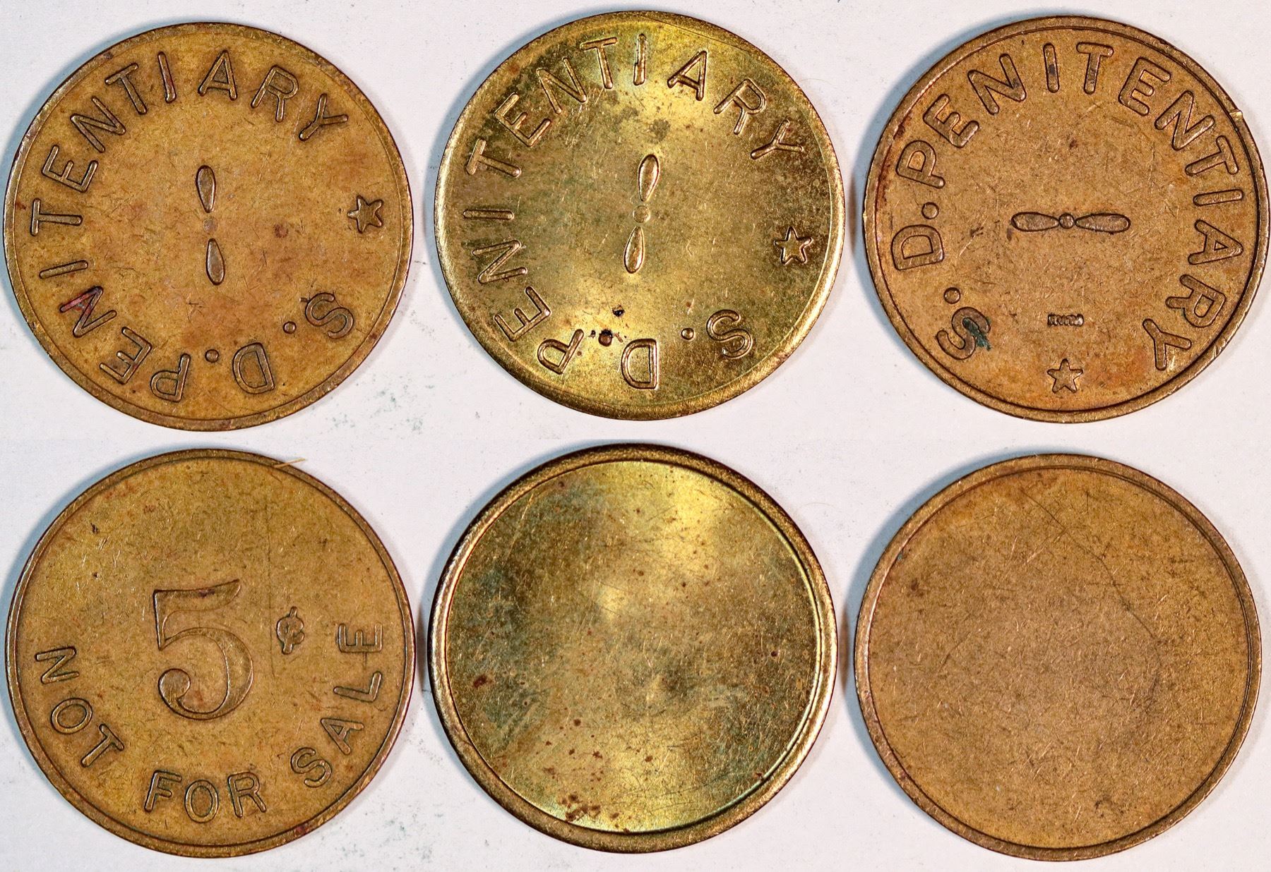 S.D. /Penitentiary//5cents//Not//For//Sale//Brass//21mm (2) S.D./Penitentiary//Blank//Brass//21mm Please see photos for more details and condition