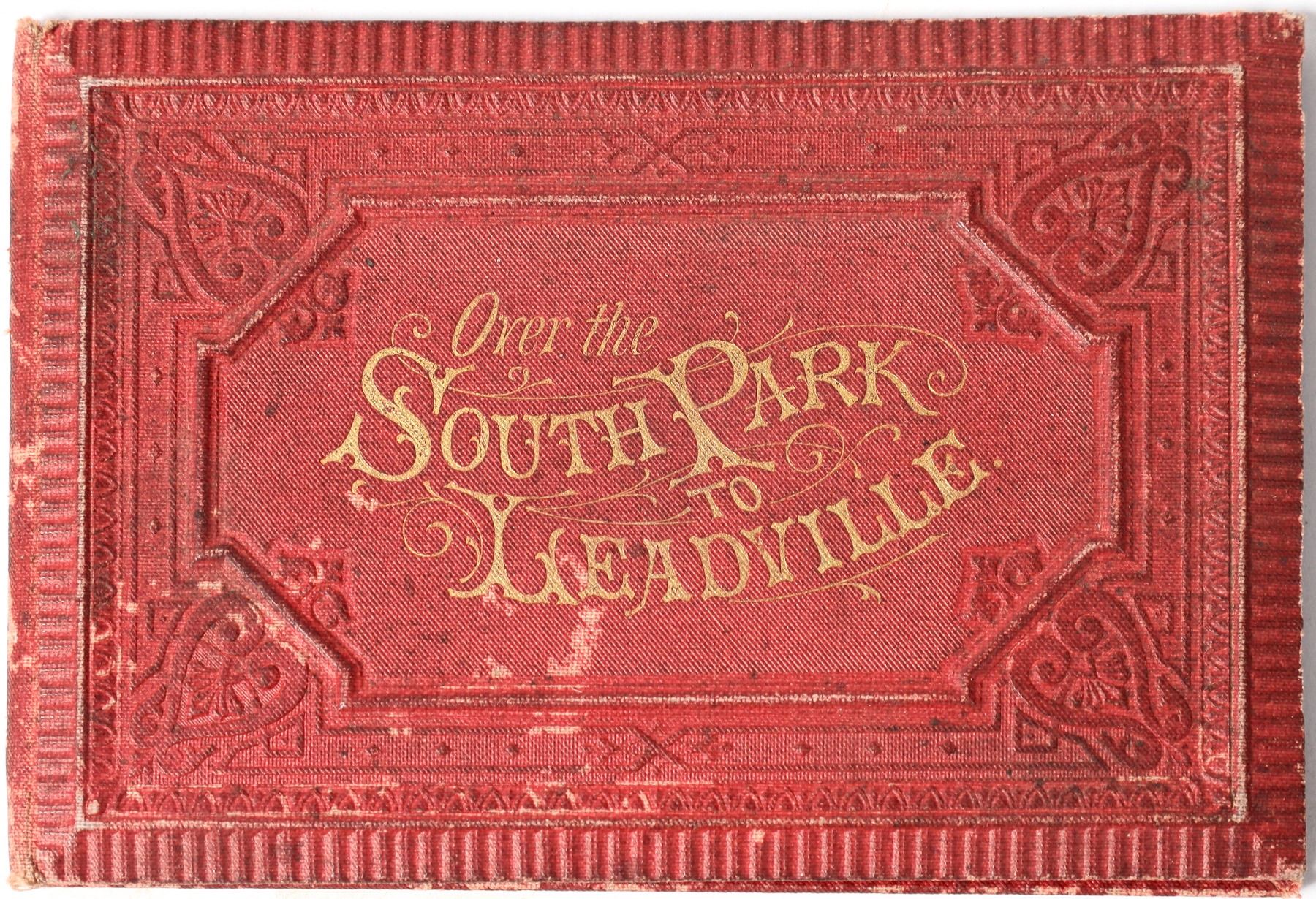 Over the South Park to Leadville. An illustrated souvenir book depicting the scenic views and street views of Colorado from South Park to Leadville. This is a rare piece. 5 x 3.5 inches. 18 pages. Good condition.