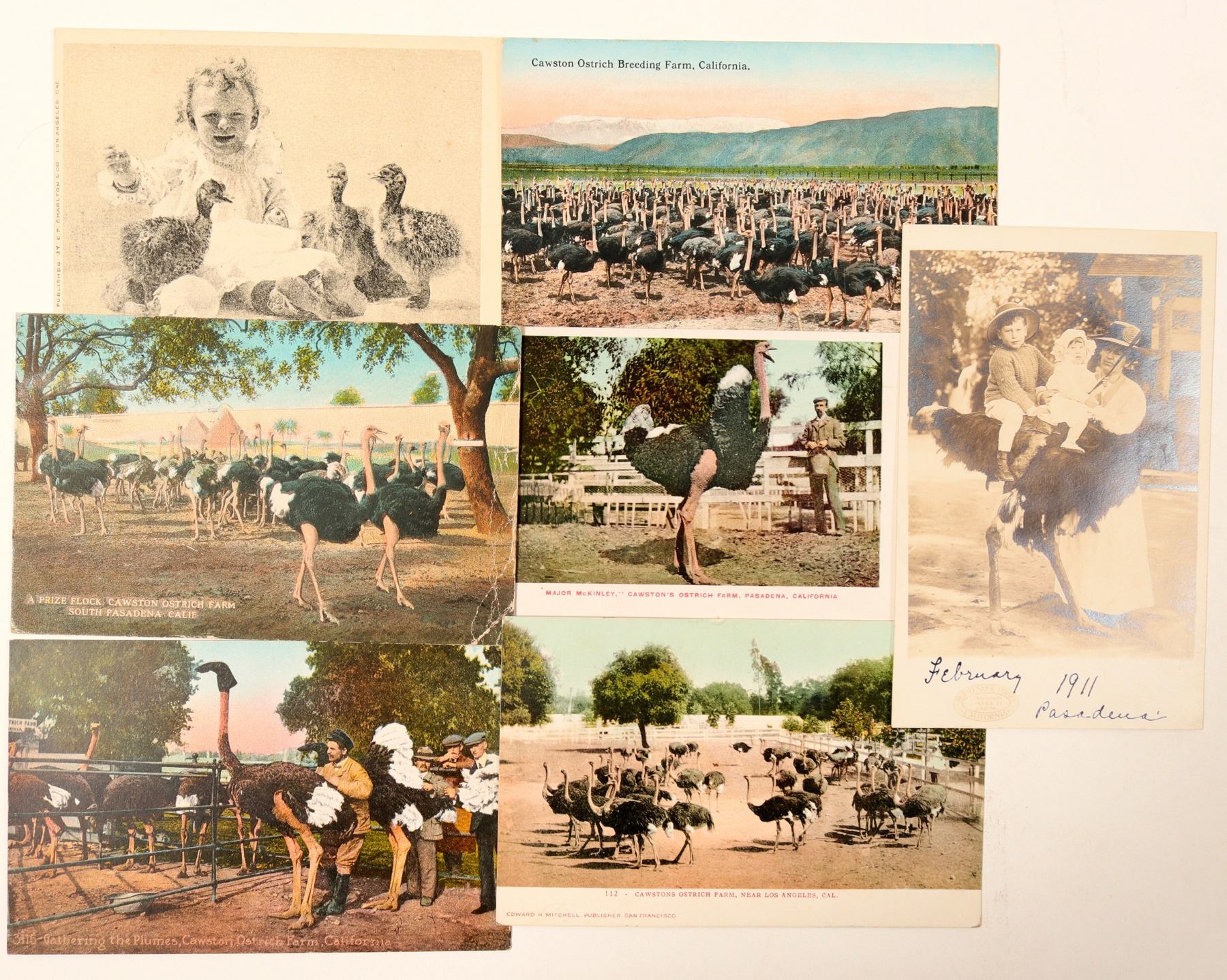 7 South Pasadena, CA ostrich farm postcards with 1 RPC. Salvatore Falcone Collection