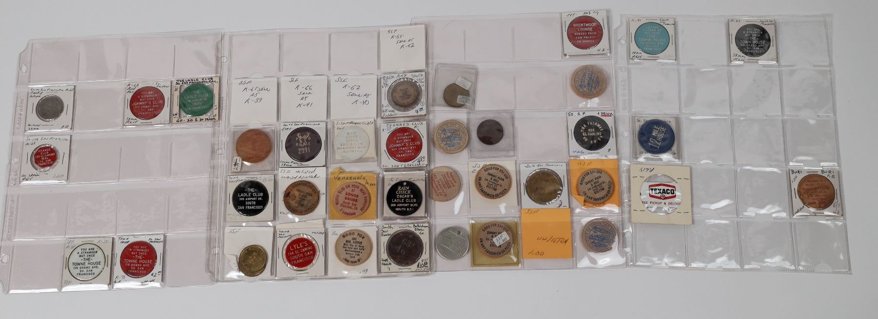 About 30 South San Francisco tokens. The Towne House, Orange Club, Johnny's Club, The Ladle Club, Elks, Brentwood Lounge, The Fairway, 12 Mile House etc.