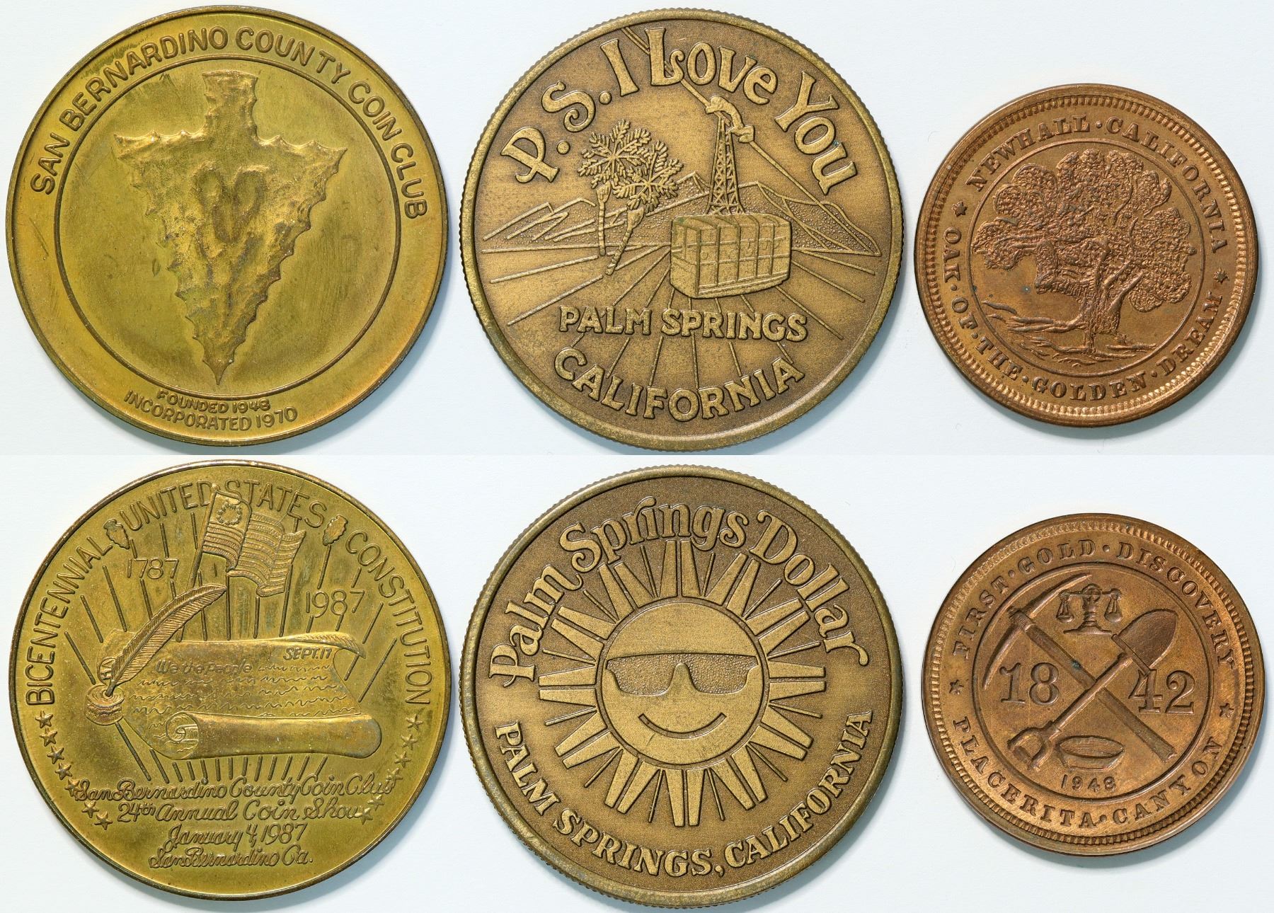 Lot of three: San Bernadino County Coin Club, Palm Springs and Newhall, California.