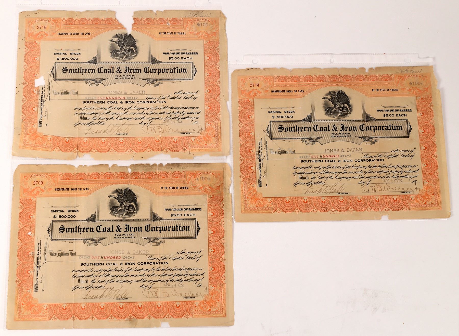 Lot of three. All 1922. Eagle vignette. All to Jones & Baker. Incorporated in Virginia. Certificates are in fair to poor condition. New Mexico 1922