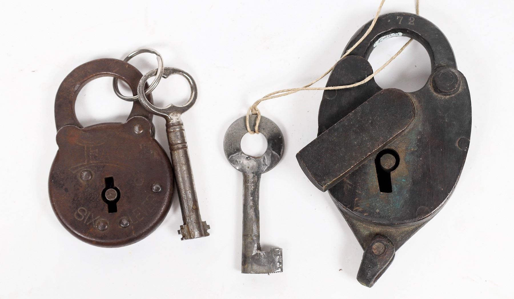 Two locks in this group; one is marked "S.P. Co./ #72/ 6 89" 4.5 in. with key. The second lock is an Eagle brand lock at 3 in. patent date of "June, 1914", with key.