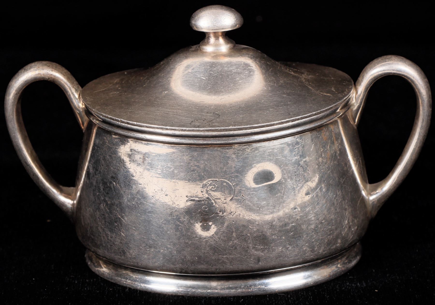 Reed & Barton silver soldered 9 ounce bowl and lid, engraved "S & R" (Southern Railway).