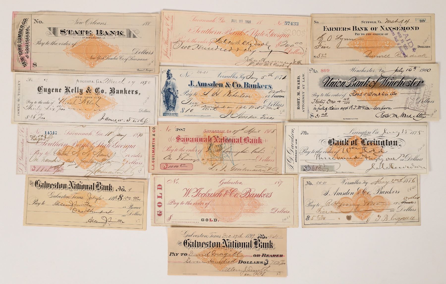 Collection of Southern states RN checks, c. 1875-1900. Louisiana 1 RNG. Georgia 1 RNX, 1 RNB, 1 RND, 4 RNG. Kentucky 2 RNC, 1 RND. Texas 1 RNC, 2 RNX. Virginia 1 RND, 2 RNX. c1875-1900