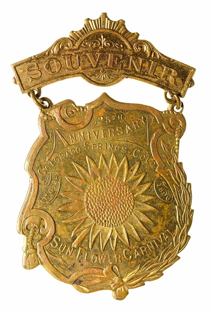 Souvenir 25th Anniversary Colorado Springs, CO Sun Flower Carnival Badge Aug. 3rd-8th 1896 City: Colorado Springs State: Colorado Date: 1896 hwac# 35755