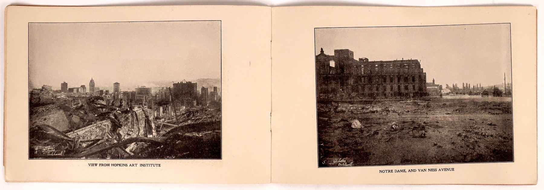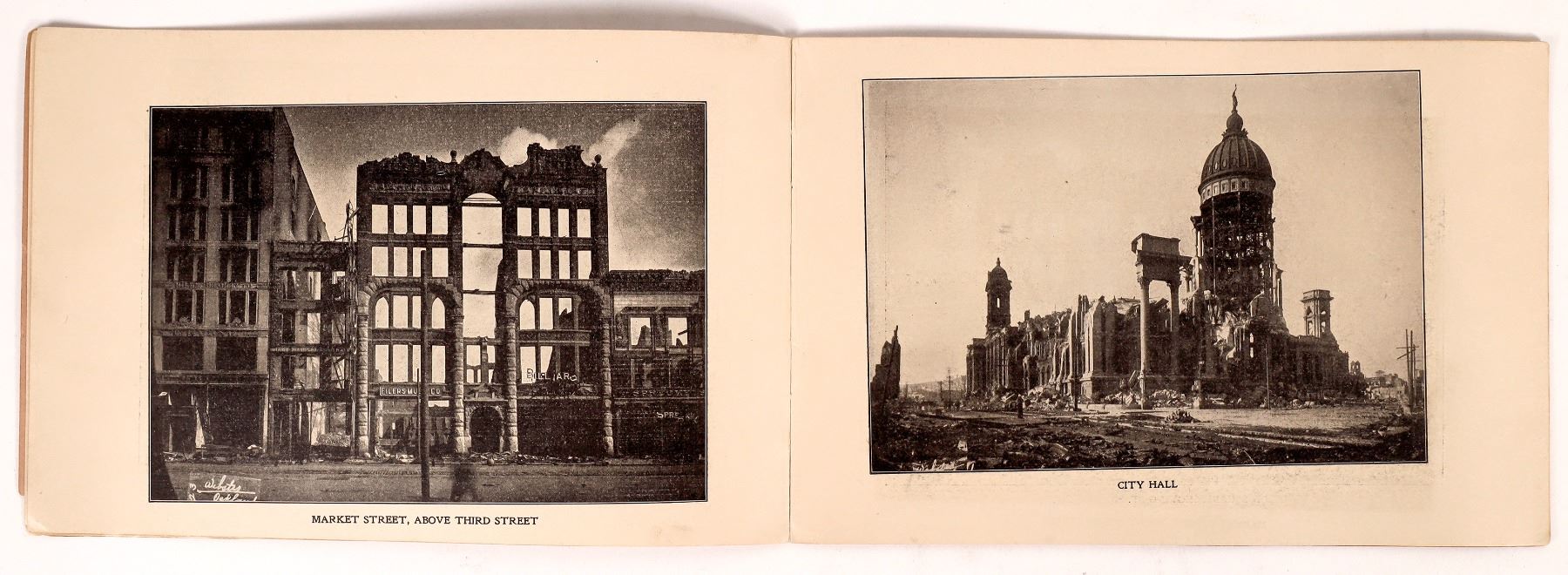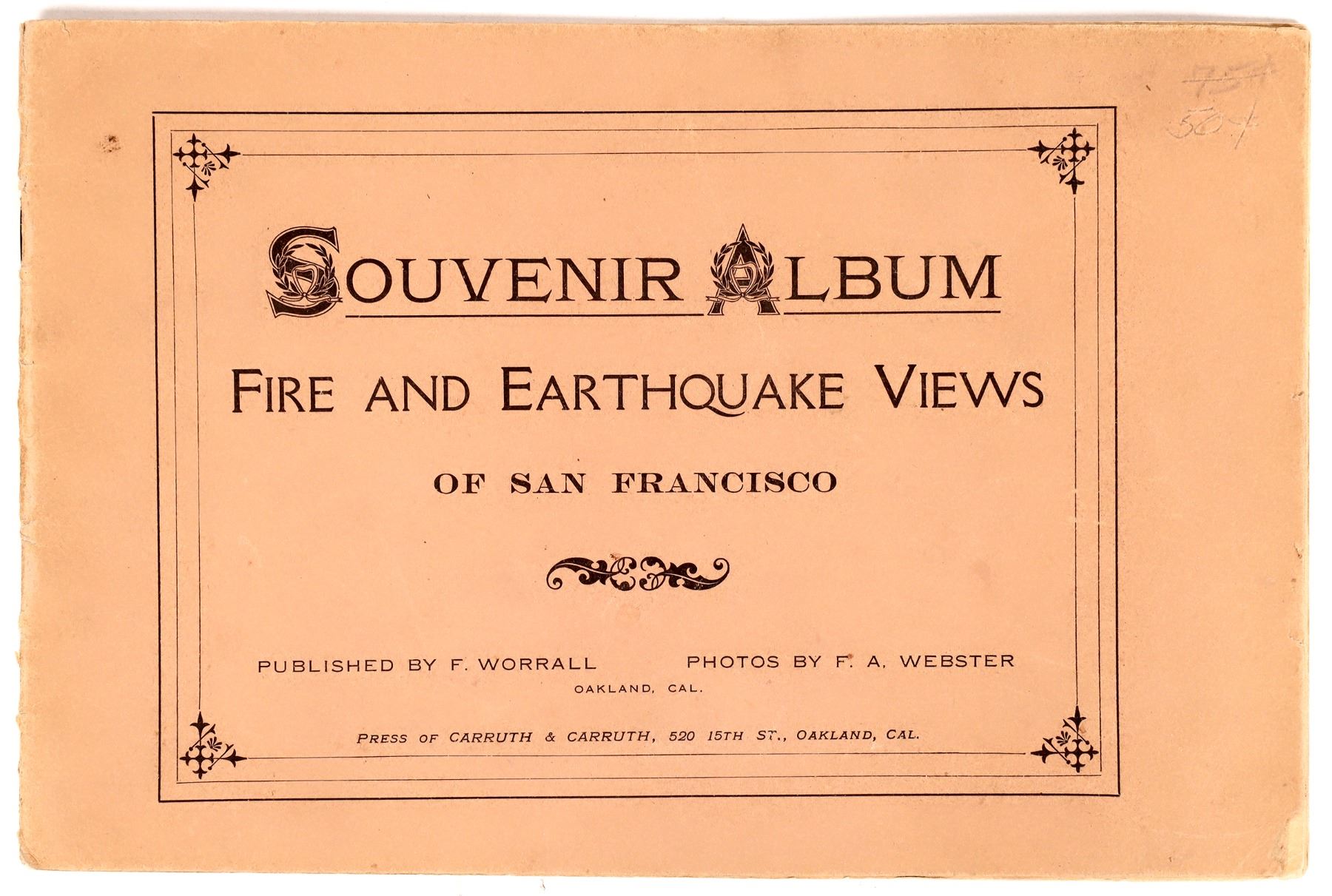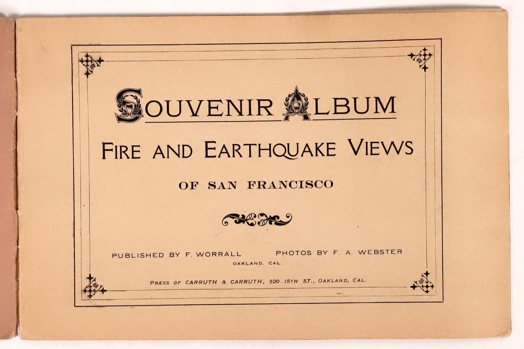Rare, Souvenir Album, Fire and Earthquake Views of San Francisco by Worrall, undated. Contains all pictures of destruction from the 1906 earthquake. 6x9.25". California San Francisco