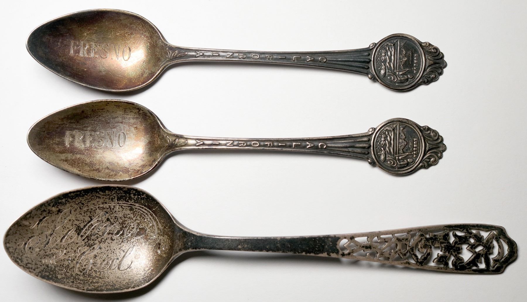 This is a group of spoons from Fresno. One spoon is beautifully pierce cut. Pleasee the photos for details.